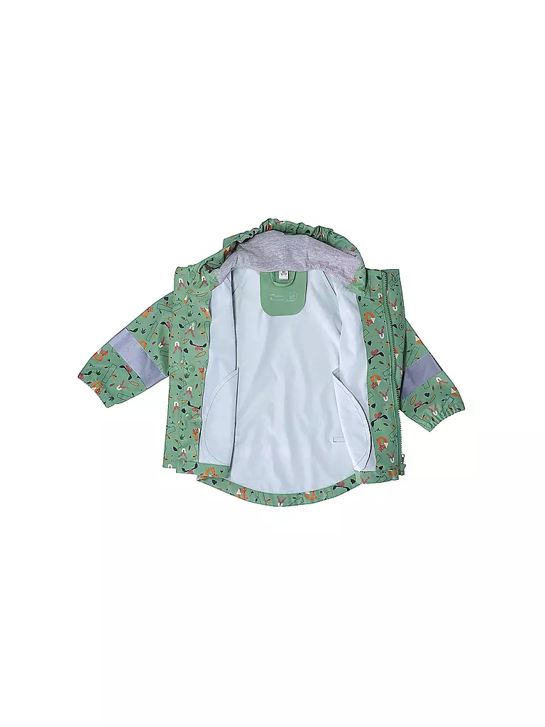 Perfekt f\u00fcr kleine Entdecker! Diese wasserdichte Regenjacke von Sterntaler sch\u00fctzt dein Kind zuverl\u00e4ssig vor Regen und Wind. Mit praktischem Reissverschluss, gem\u00fcttlich gef\u00fctterter Kapuze und verschwei\u00dften N\u00e4hten bleibt garantiert alles trocken. Der coole reflektierende Stern auf dem R\u00fccken sorgt f\u00fcr mehr Sichtbarkeit auf dem Weg zum Kindergarten oder beim Spielen. Die \u00e4rmel sind mit elastischen B\u00fcndchen ausgestattet, damit nichts reinzieht. Super praktisch: Die Jacke hat auch Taschen f\u00fcr kleine Sch\u00e4tze! Im frischen Eukalyptus-Farbmix sieht sie einfach niedlich aus. \u00dcbrigens passt sie super zu Regenhosen und Gummistiefeln - ideal f\u00fcr jeden Matschtag! Gr\u00f6\u00dfe 74, f\u00fcr Jungs und M\u00e4dchen gleicherma\u00dfen geeignet. Made by Sterntaler - da wei\u00dft du, dass die Qualit\u00e4t stimmt!