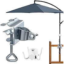 Endlich Schatten auf dem Balkon! Diese praktische Schirmhalterung aus stabilem Aluminium klemmt sich einfach an dein Balkongeländer - ganz ohne Bohren. Passt für Geländer bis 19cm Dicke und Schirmstangen von 22-32mm Durchmesser. Super einfache Montage: einfach anklemmen und Handschraube festziehen. Hält auch bei Wind sicher stand. Viel platzsparender als schwere Sockel - du gewinnst wertvollen Balkonplatz zurück. Mit praktischem Aufhängehaken für kleine Accessoires. Leicht und tragbar, kannst du sie jederzeit umpositionieren. Ob vertikal oder horizontal - dein Sonnenschirm steht genau da, wo du ihn brauchst. Genieße den Sommer im Schatten!