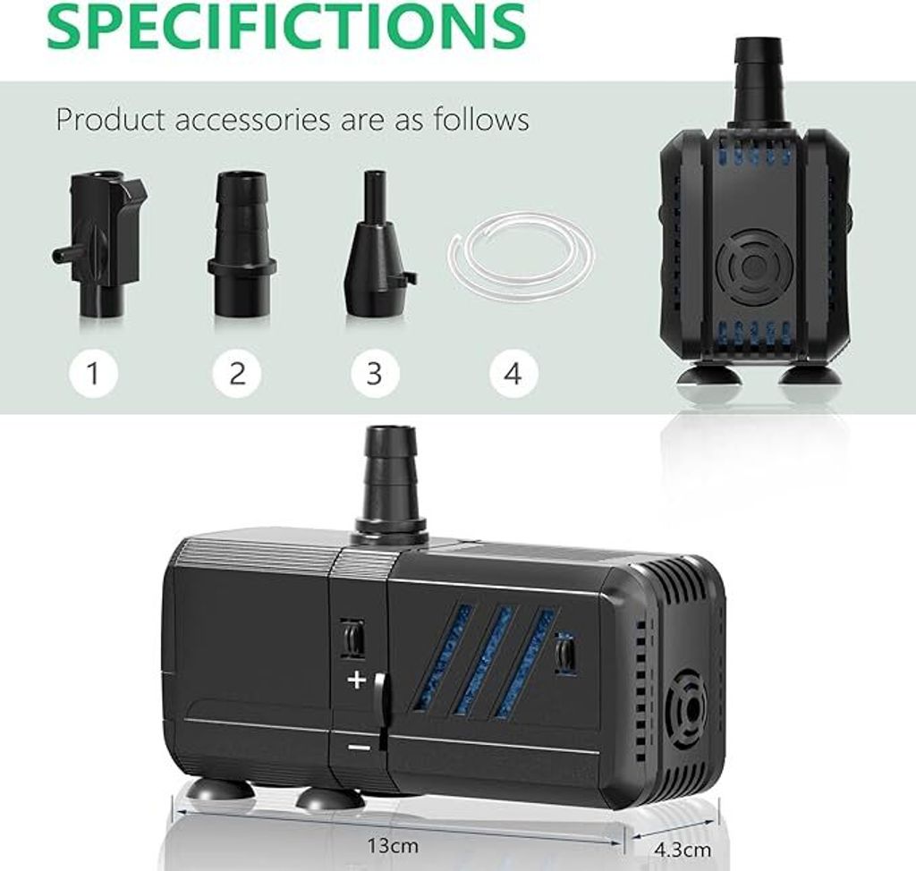 Deine Fische werden's lieben! Dieser vielseitige Innenfilter macht das Wasser schön sauber und sauerstoffreich. Mit 6W Leistung und 600L/H Durchfluss - perfekt für Aquarien von 20-40 Litern. Besonders features: Regenschirm- und Sprühmodus für mehr Sauerstoff, verstellbarer Durchfluss, und superleise! Die kleinen Löcher schützen Fische und Garnelen vor Verletzungen. Mit 5 Saugnäpfen für sicheren Halt. Einfach zu reinigen - einfach auseinandernehmen und säubern. Inklusive Ersatzschwamm. Ein echter Allrounder für gesundes Aquariumwasser!