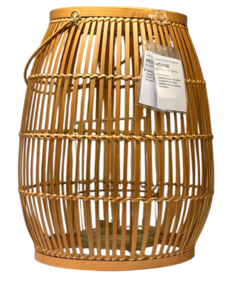 HÖVISK Bambus Laterne Für Blockkerzen - 29 Cm, Handgewebt, Mit Glasröhre