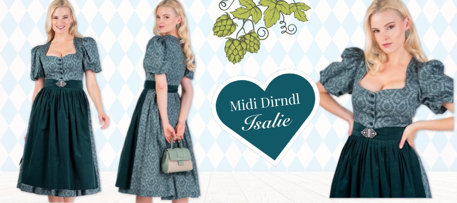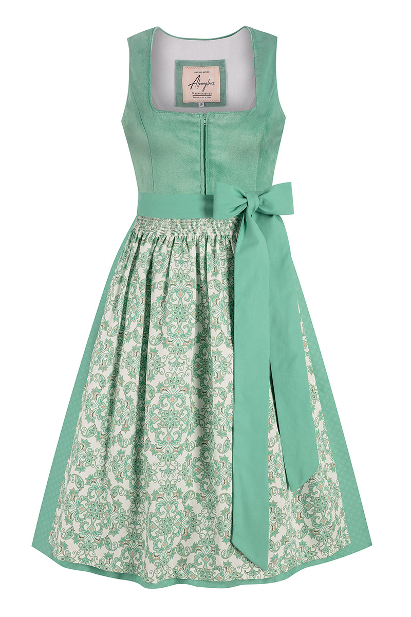 Aus hochwertigem Trachtenstoff - sitzt perfekt und fühlt sich gut an. Mit passender Schürze - komplett outfitted fürs Wiesn-Vergnügen! Der Schnitt ist klassisch und schmeichelhaft.