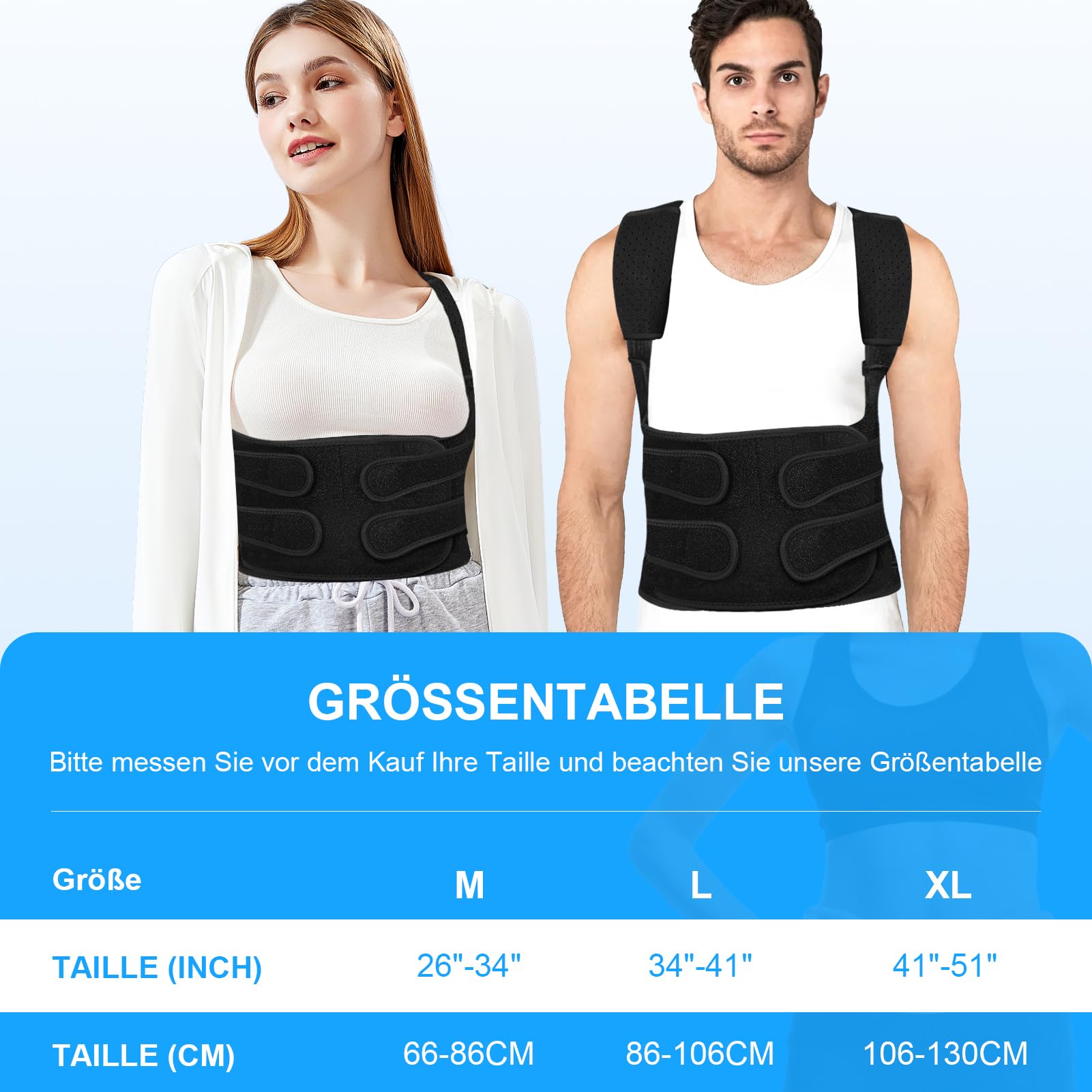 Schluss mit krummem Sitzen und Rückenschmerzen! Der Noxtioanip Rücken Geradehalter bringt dich wieder in die richtige Position. Aus weichem, atmungsaktivem Material - super bequem zu tragen und sogar waschbar. Die zwei ABS-Stützstangen passen sich deiner Körperform an und geben Rücken, Nacken und Schultern den nötigen Halt. Die elastischen Schultergurte dehnen Brust und Rücken sanft - das tut richtig gut! Besonders praktisch: Die ergonomische Struktur mit Rückenkreuzpunkten und gepolsterten Schultergurten verhindert Druckstellen unter den Achseln. Passt bei Brustumfang von 81-99cm und Gewicht 47-64kg - unisex also für Frauen und Männer. So unauffällig, dass du ihn problemlos unter der Kleidung tragen kannst. Ob bei der Arbeit, beim Lernen, Yoga, Sport oder sogar beim Autofahren - du verbesserst deine Haltung quasi nebenbei. Kein lästiges Gerät, sondern ein diskreter Helfer für den Alltag. Dein Rücken wird's dir danken!