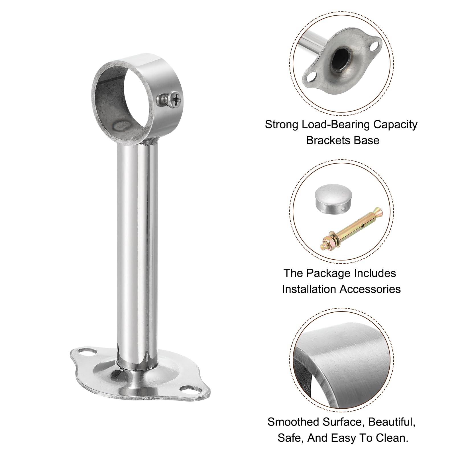 4 Gardinenstangenhalter Für Deckenmontage - Edelstahl Halterung Für 25mm Rohr