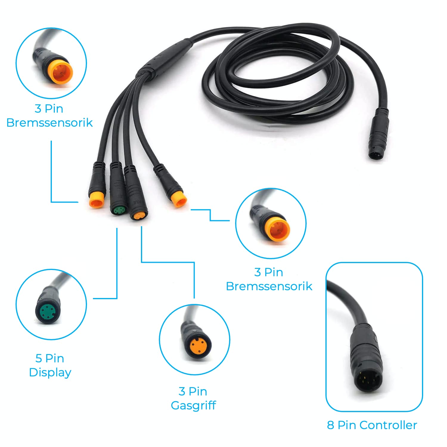 Windmeile Verlängerungskabel 50cm Für E-Bike Controller - 8-Pin Wasserdicht