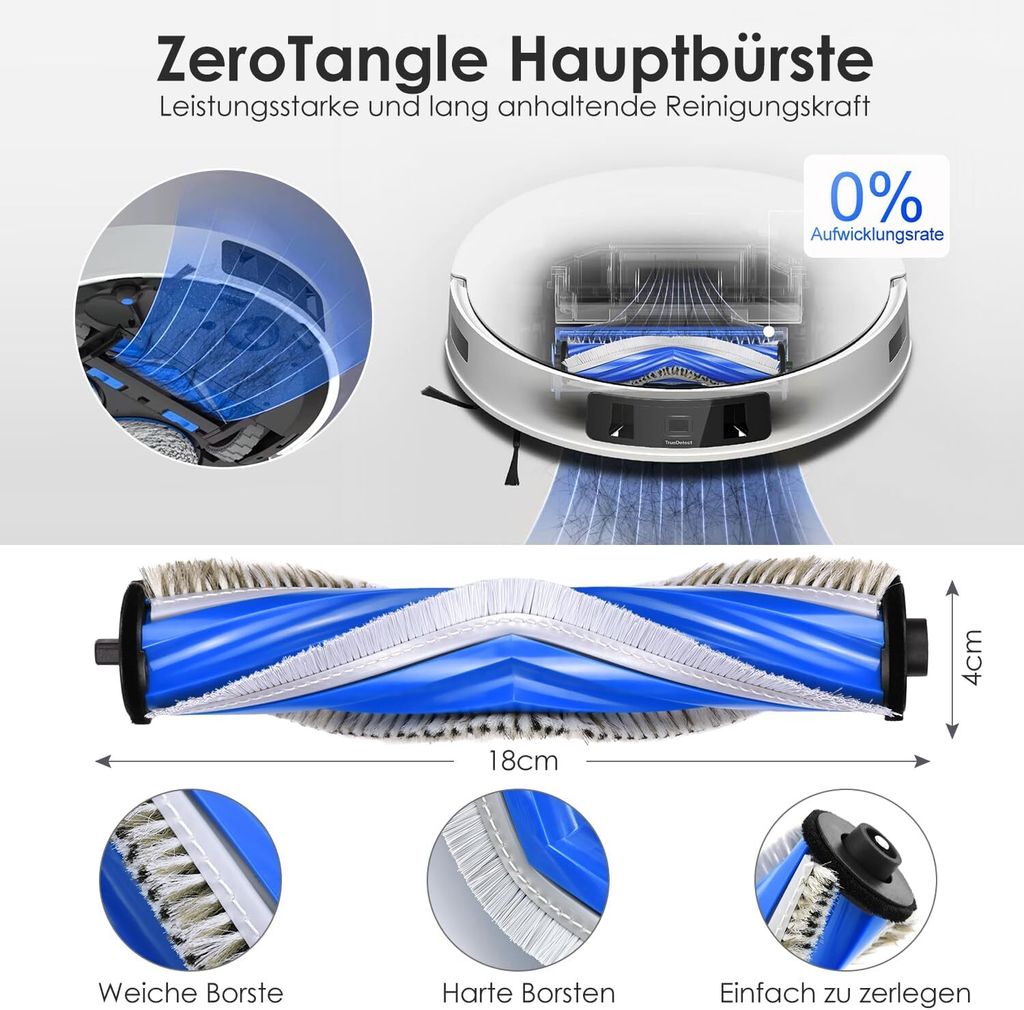 Die Gummibürsten sind super langlebig und wickeln sich nicht so schnell zu - perfekt gegen Haare und Staub! Die Wischtücher entfernen selbst hartnäckige Flecken wie Fruchtsaft oder Ölspuren. Und die Staubbeutel mit Aktivkohle-Filterung halten 99% des Drecks sicher fest - kein Staub mehr in der Luft!