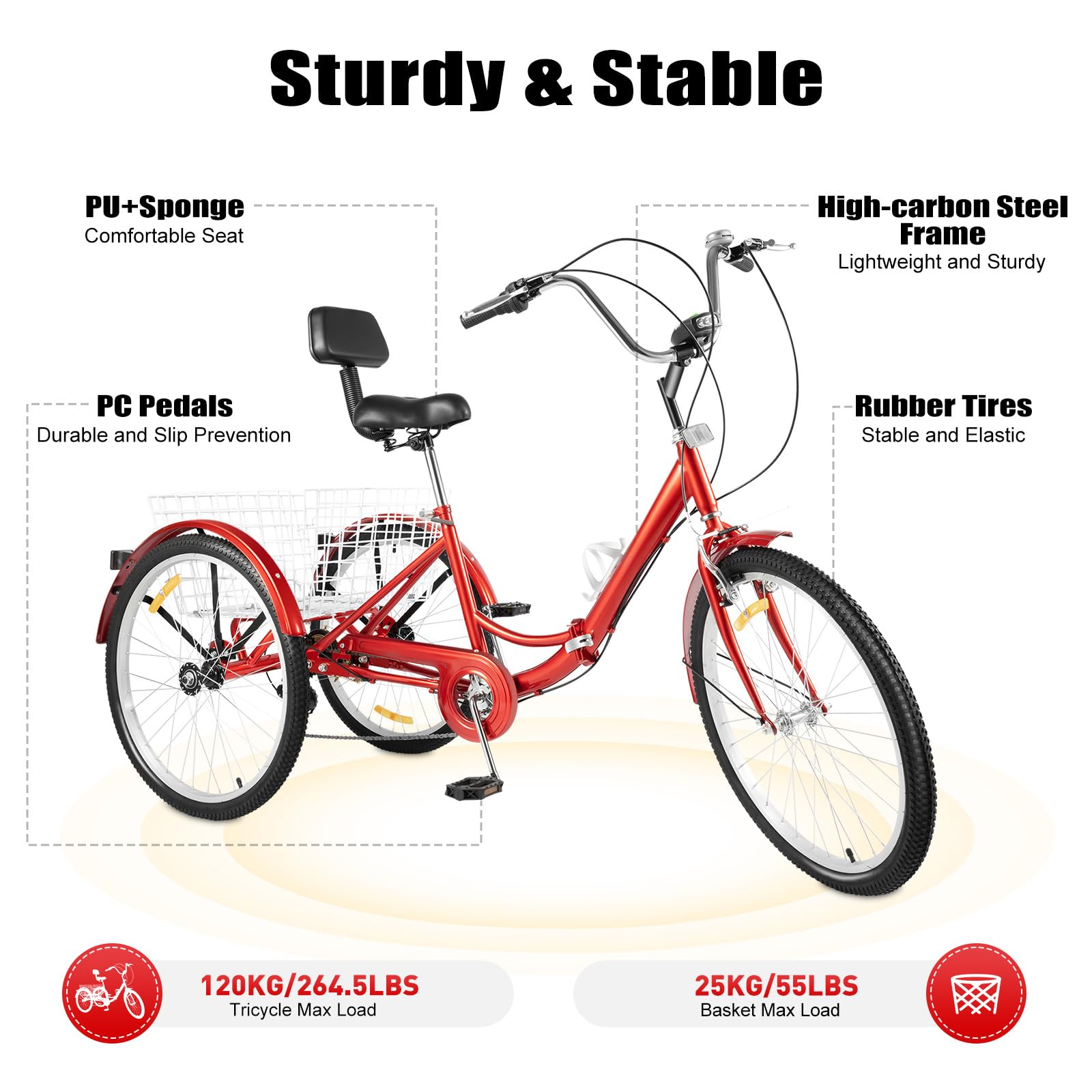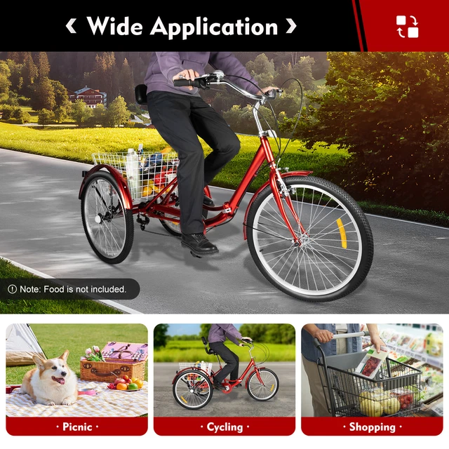 Endlich mal wieder Radfahren, ohne das lästige Balance-Problem! Dieses coole 24-Zoll-Dreirad ist perfekt für alle, die es sicher und bequem mögen. Mit 7 Gängen meisterst du damit locker jeden Hügel - ob zum Einkaufen, für den Wochenendausflug oder einfach nur für eine entspannte Runde durch die Nachbarschaft. Der praktische Einkaufskorb hinten dran ist super für deine Einkäufe oder die Handtasche. Und das Beste: Der Sattel und Lenker lassen sich super easy an deine Körpergröße anpassen (Sattel 98,5-117 cm, Lenker 111-114,5 cm). Der ergonomische Rücken-Sattel ist mega-bequem und das Ledermaterial fühlt sich richtig klasse an. Bis zu 120 kg trägt das robuste Teil problemlos - also keine Sorge, das hält! Die breiten Reifen geben dir zusätzliche Stabilität und Sicherheit. Perfekt für alle, die umweltfreundlich und gesund unterwegs sein wollen, ohne Stress mit dem Gleichgewicht. Einfach aufsteigen und losfahren - so einfach kann Radfahren sein!