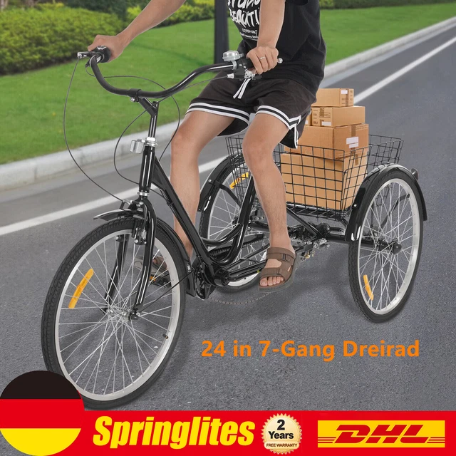 LSskm 24 Zoll Dreirad Für Erwachsene - 7-Gang Nabenschaltung Mit Einkaufskorb | Stabil & Sicher Für Senioren