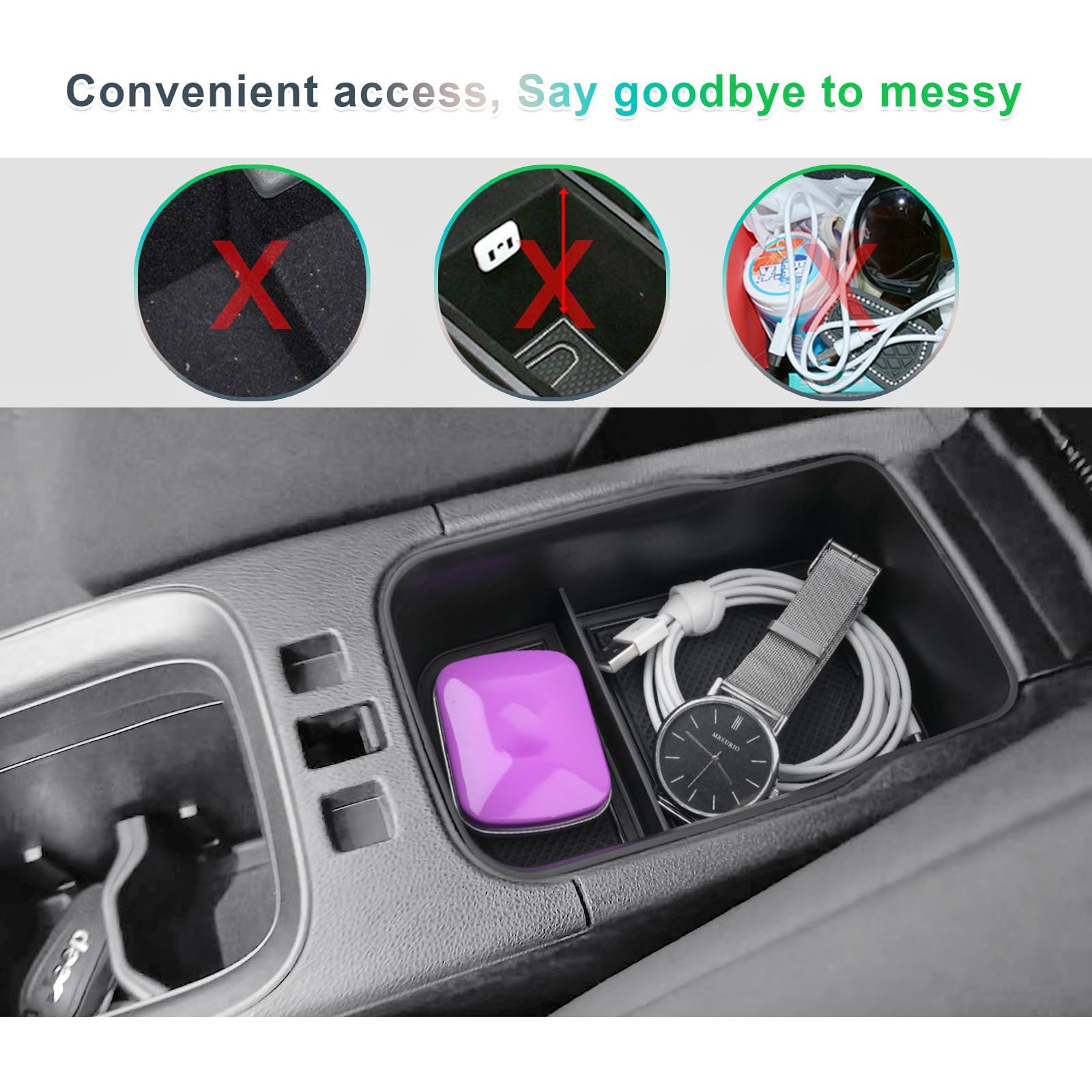 Schluss mit dem Chaos in der Mittelkonsole deines Fiat 600 Hybrid oder 600e! Diese Aufbewahrungsbox sorgt für Ordnung. Einfach reinsetzen - keine Montage nötig. Das ABS-Material ist robust, hitze- und kältebeständig, und die rutschfeste Matte reduziert Geräusche. Oben lassen sich kleine Sachen wie Handy, Schlüssel, Karten oder Münzen griffbereit unterbringen, unten kommt Selten-Genutztes hin. Passt perfekt ins Originalfahrzeug (Kompatibilität vorher prüfen!). So findest du alles sofort und die Armlehne bleibt immer aufgeräumt. Ein Must-Have für alle, die Ordnung lieben!