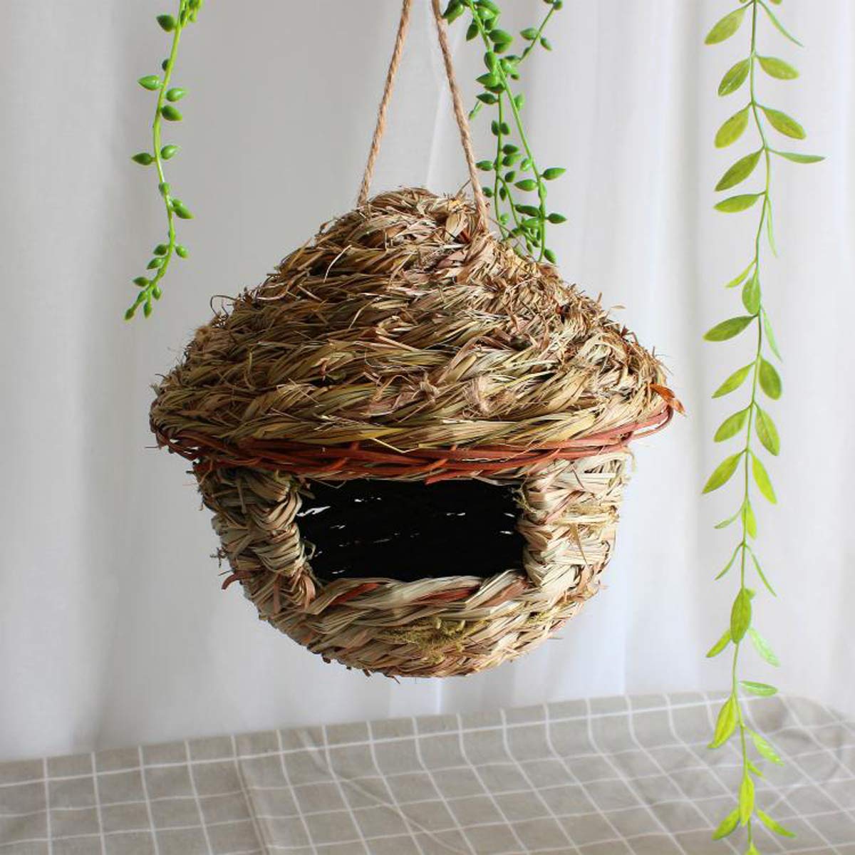 Ein gemütliches Zuhause für unsere gefiederten Freunde! Dieses traditionelle Vogelnest aus natürlichem Stroh ist perfekt für deinen Garten. Handgeflochten und komplett umweltfreundlich - die Vögel lieben es! Ideal für Zaunkönige, Meisen und andere Gartenvögel. Einfach an einem Baum oder an der Hauswand in max. 2m Höhe aufhängen. Am besten an einer geschützten Stelle zwischen Sträuchern - nicht in der prallen Sonne oder im Regen. Im Winter bietet es Schutz vor Kälte und Sturm, im Frühling wird's zur Kinderstube für die Vogelküken. Maße zur Auswahl: A (18x15x23cm), B (11x11x12cm), C (14,5x14,5x20cm). Ein tolles Projekt für die ganze Familie - die Vögel werden's dir danken!