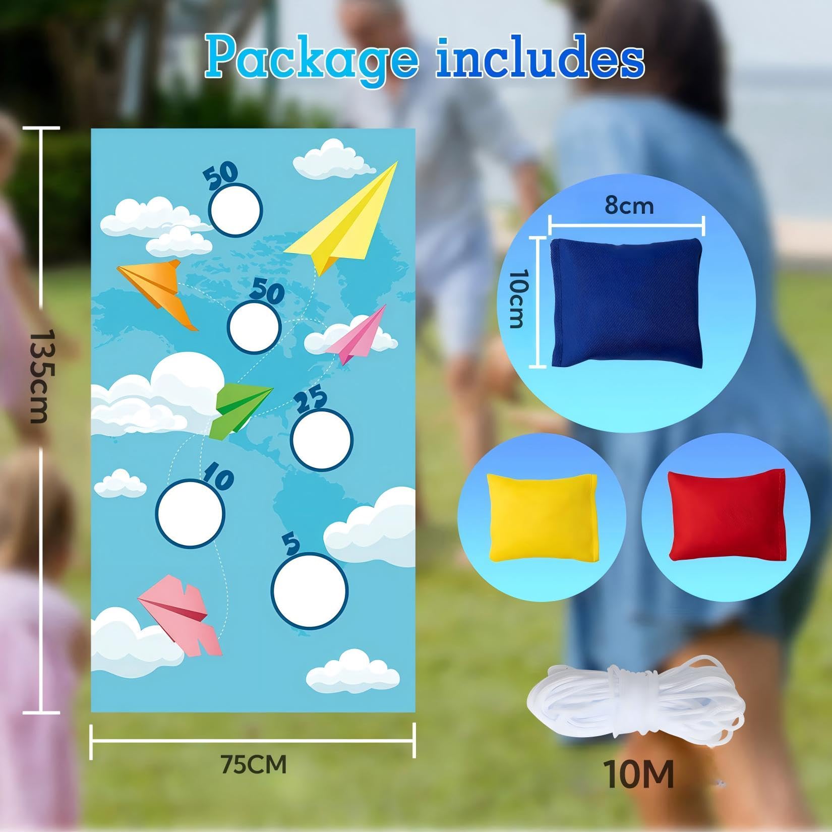 Aus robustem PP-Material gebaut, hält das Spiel auch bei intensivem Gebrauch stand. Die Maße von 62x58x24cm sind perfekt für drinnen und draußen. Besonders praktisch: Die Sitzsäcke schwimmen sogar auf dem Wasser!
