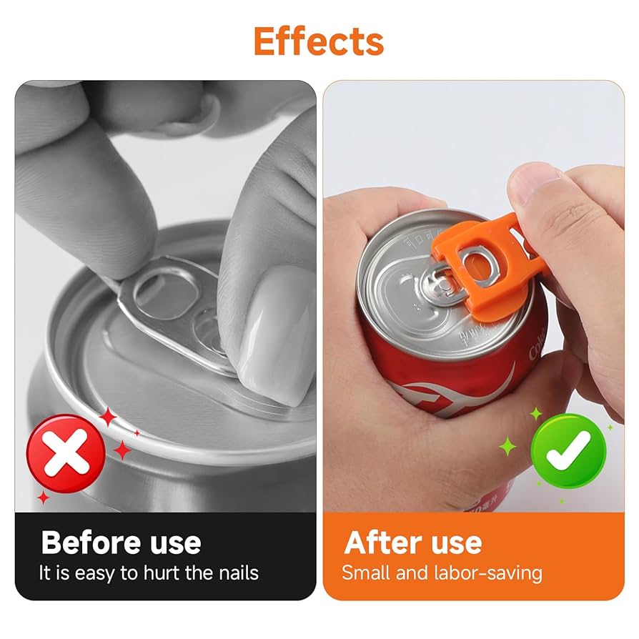 Schluss mit wunden Fingern und abgebrochenen Nägeln! Diese 6 praktischen Dosenöffner machen das Öffnen von Cola, Bier & Co. zum Kinderspiel. Einfach auf den Dosenverschluss schieben, bis er einrastet - dann anheben und fertig! Selbst Kinder und Senioren kommen damit problemlos klar. Super für Gartenpartys, Picknicks oder Camping. Passt für alle gängigen Getränkedosen. Spart Nerven und schont die Fingernägel. Im 6er-Pack - ideal für die ganze Familie oder um welche zu verschenken. Kleiner Helfer, großer Nutzen!