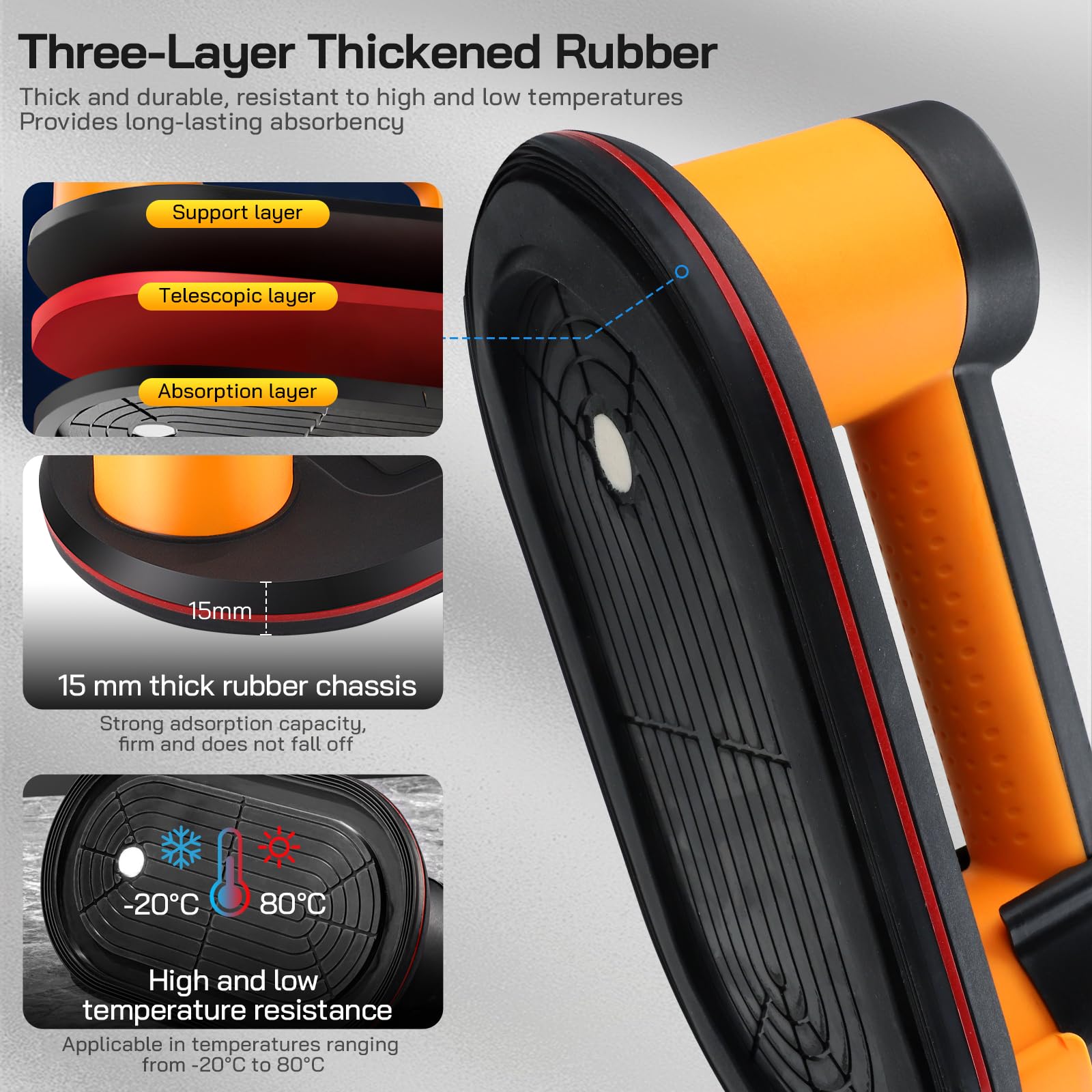 Wow, dieser Saugheber ist ein absoluter Game-Changer für alle Handwerker und Heimwerker! Mit zwei starken Motoren hebt der bis zu 300kg schwere Glasplatten, Fliesen oder andere glatte Oberflächen an. Das geniale daran: Er läuft mit Akku! Der 4000mAh Akku hält bis zu 8 Stunden durch, und mit USB-C laden geht's super schnell. Das LCD-Display zeigt dir immer genau an, wie viel Saugkraft gerade wirkt und wie viel Akku noch da ist. Die 10-Zoll-Basis mit mikrotexturierter Oberfläche hält selbst auf staubigen oder nassen Fliesen bombenfest. Besonders sicher: Stoppt automatisch bei Überlastung und gibt Luft ab, wenn's kritisch wird. Der ergonomische Griff liegt super in der Hand, und mit nur zwei Knopfdrücken bist du startklar. Egal ob beim Fliesen verlegen, Glas transportieren oder anderen Hebearbeiten - damit hast du beide Hände frei und machst dir keinen Rücken kaputt. Einfach genial!