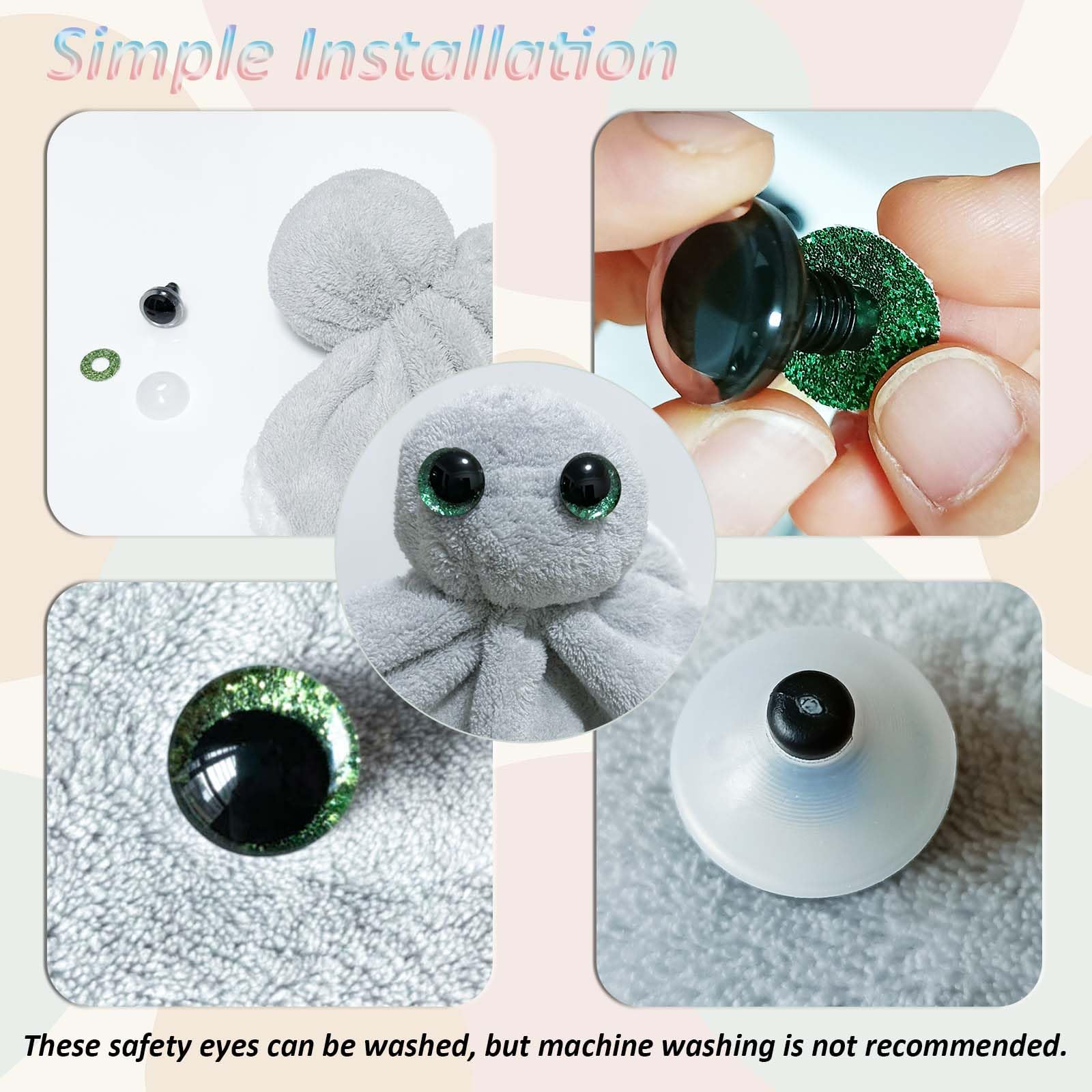 MOLZINY 20 Stück Glitzer Augen Für Häkeltiere | Knopfaugen 12-20mm | Mit PU-Abstandshaltern | DIY Basteln