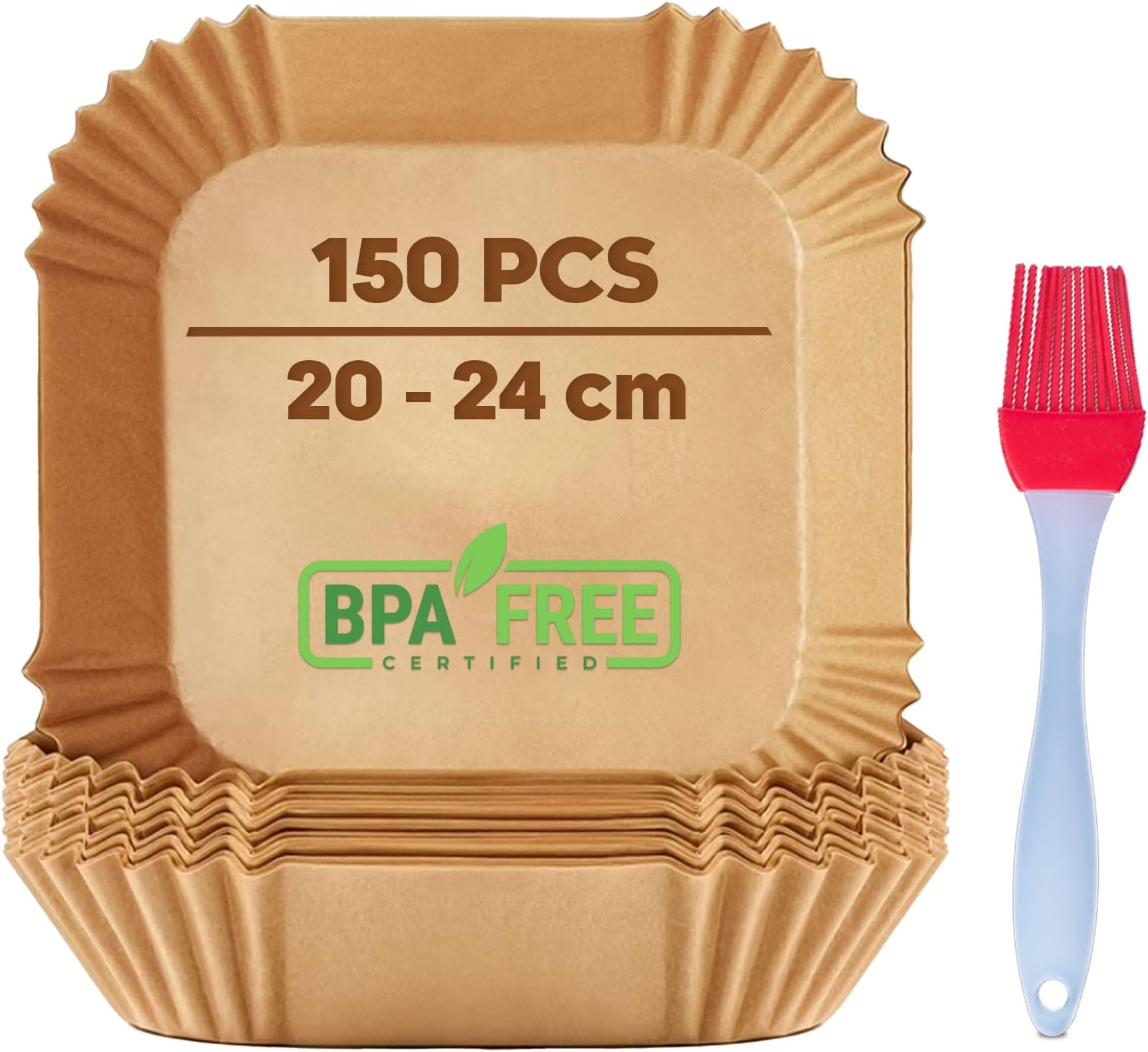 Nie wieder mühsam putzen! 150 praktische Backpapier-Einlagen speziell für Heißluftfritteusen. Im Quadrat 20x20cm, passend für die meisten Modelle (COSORI, Philips, Ninja, Tefal uvm.). Hitzebeständig bis 230°C und mit Antihaftbeschichtung. Einfach reinlegen, backen und danach entsorgen. Spart Zeit und Nerven beim Reinigen. Extra dick und reißfest - nichts läuft durch. Tipp: Erst nach dem Vorheizen einlegen und mit Lebensmitteln beschweren. So macht gesundes Kochen noch mehr Spaß!