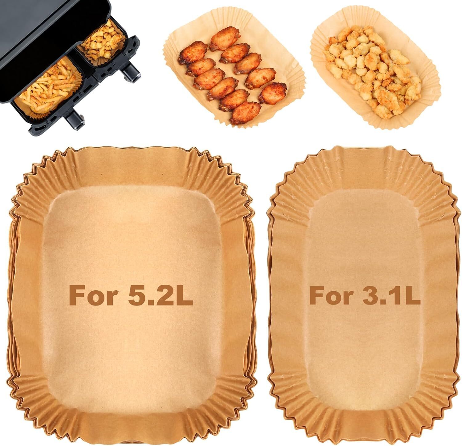 Pekimu Backpapier Für Heißluftfritteuse - 150 Stück 20x20cm, Hitzebeständig Bis 230°C