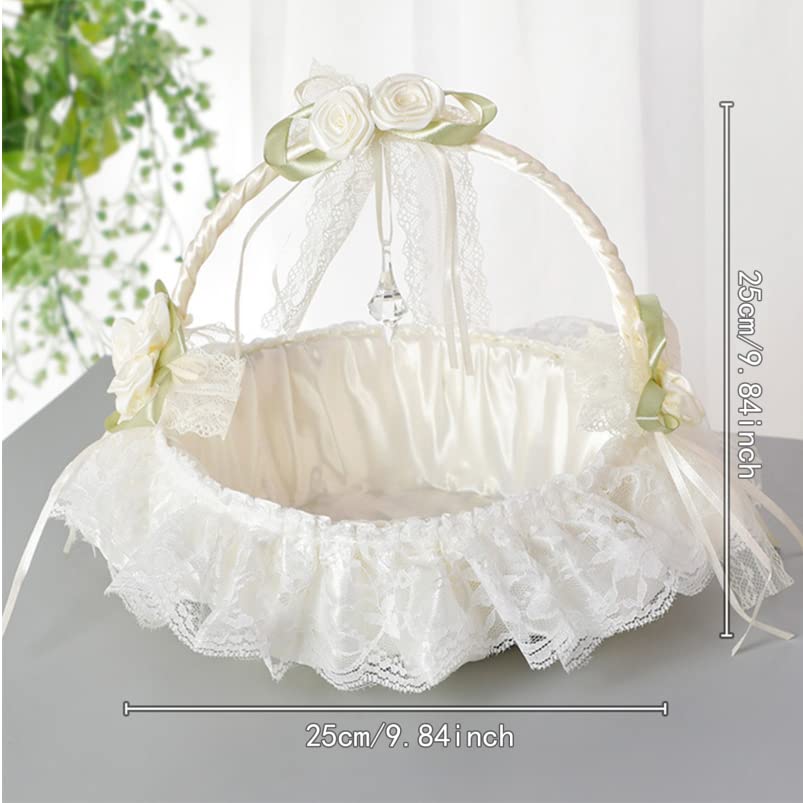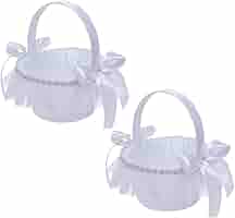 Hallo Brautpaar! Plant ihr eine Hochzeit und sucht nach den perfekten Körbchen für eure Blumenmädchen? Diese weißen Blumenmädchen-Körbe sind einfach traumhaft! Aus Satin und Spitze handgefertigt, verziert mit Blumen, Schleifen und Strasssteinen - was will man mehr? Mit 25x25 cm sind sie groß genug für viele Blütenblätter, aber nicht zu klobig. Der Griff ist klappbar, also super praktisch zum Tragen. Wenn eure Blumenmädchen den Gang entlanggehen und Blütenblätter streuen, sieht das einfach märchenhaft aus! Die Körbe sind nicht nur für Blütenblätter gut - ihr könnt auch Süßigkeiten oder andere kleine Dinge darin transportieren. Sie sind ein wunderschönes Andenken an den besonderen Tag und eure Blumenmädchen werden sie lieben! Ob in Elfenbein oder anderen Farben - diese Körbe passen zu jedem Hochzeitsstil. Macht eure Hochzeit zu einem unvergesslichen Erlebnis mit diesen bezaubernden Blumenkörbchen! Einfach bestellen und euch auf den großen Tag freuen!