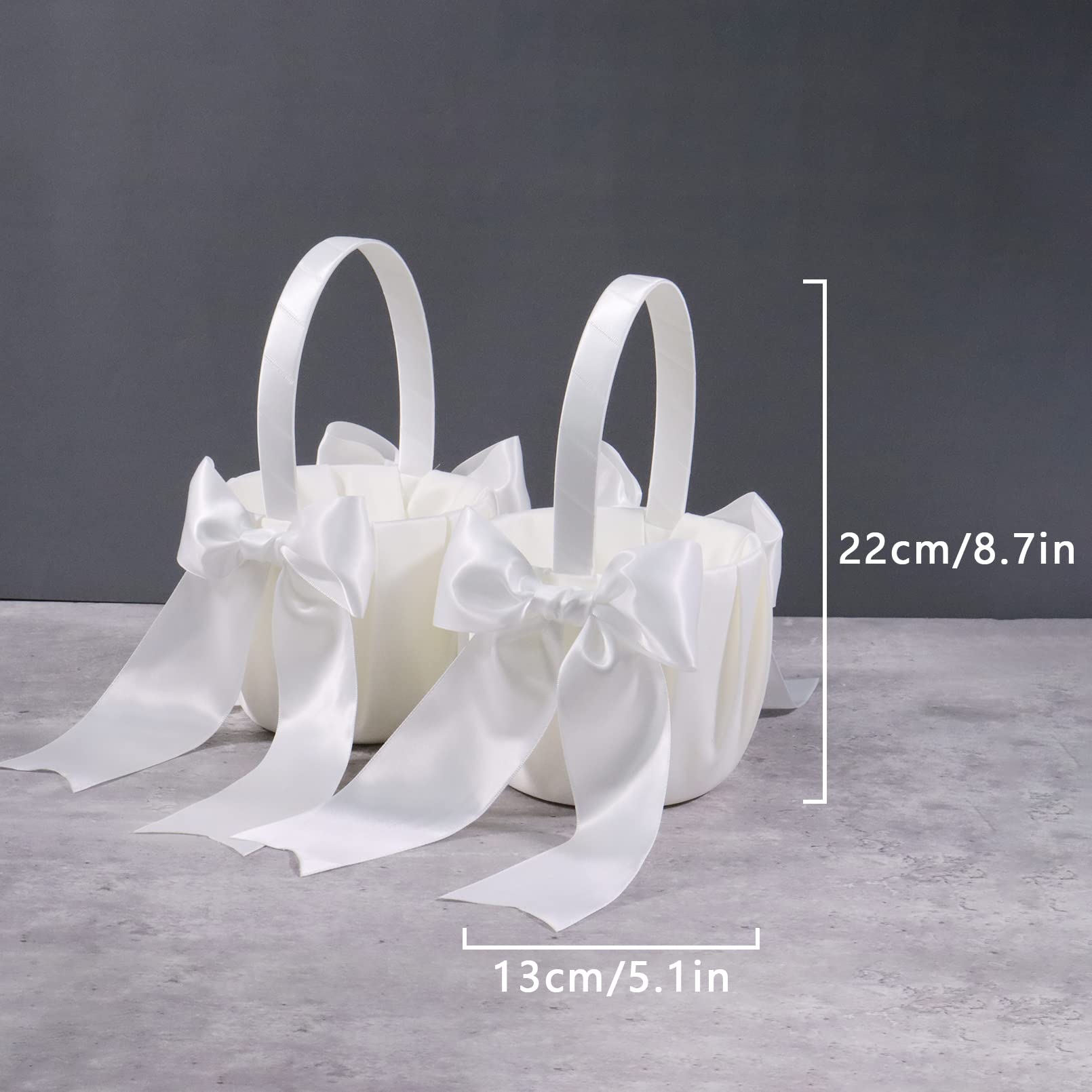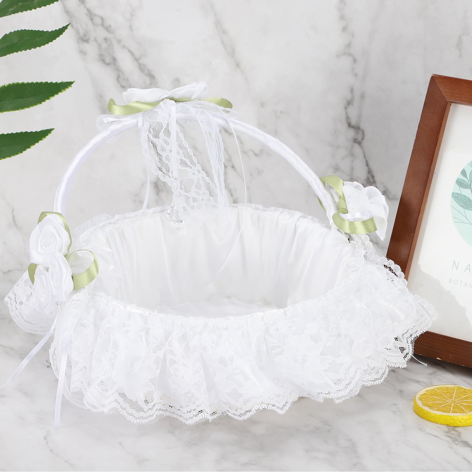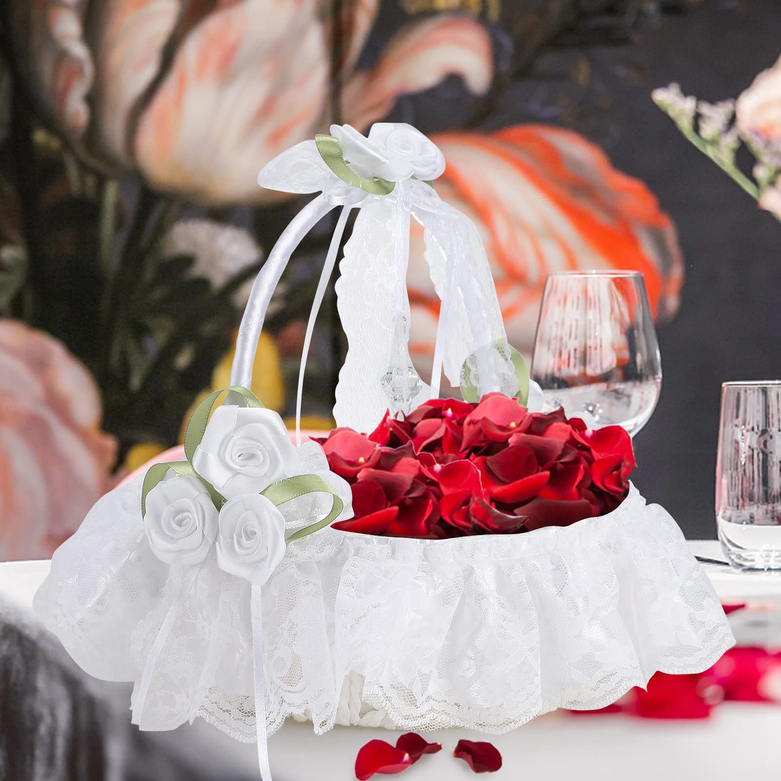 Weiße Blumenmädchen-Körbe Für Hochzeiten - Spitze & Satin Mit Strasssteinen