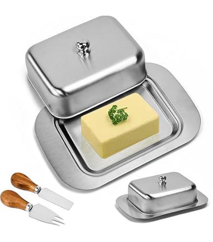 Butter bei die Fische - aber schön ordentlich! Diese elegante Butterdose aus Edelstahl bringt Stil auf deinen Frühstückstisch. Mit den Maßen 18,5x12x6,8cm bietet sie genug Platz für Butter, Käse oder andere Leckereien. Der geriffelte Deckel sitzt bombenfest und verhindert lästiges Austrocknen. Aus lebensmittelechtem Edelstahl ist die Dose spülmaschinengeeignet und super leicht zu reinigen. Perfekt für Zuhause, aber auch stylisch genug fürs Restaurant! Ob zum Frühstück, Brunch oder Abendessen - diese Dose macht immer eine gute Figur. Einfach befüllen, auf den Tisch stellen und sich an der praktischen und schönen Aufbewahrung erfreuen! Ein Must-have für jede Küche!