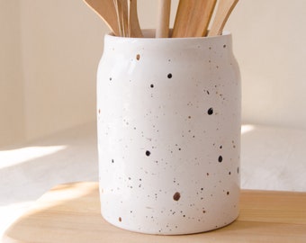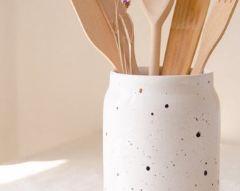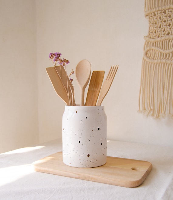 Wow, dieser Utensilienhalter aus Keramik bringt sofort Landhaus-Charme in deine Küche! Endlich haben alle Kochlöffel, Schneebesen und Schöpflöffel einen festen Platz.