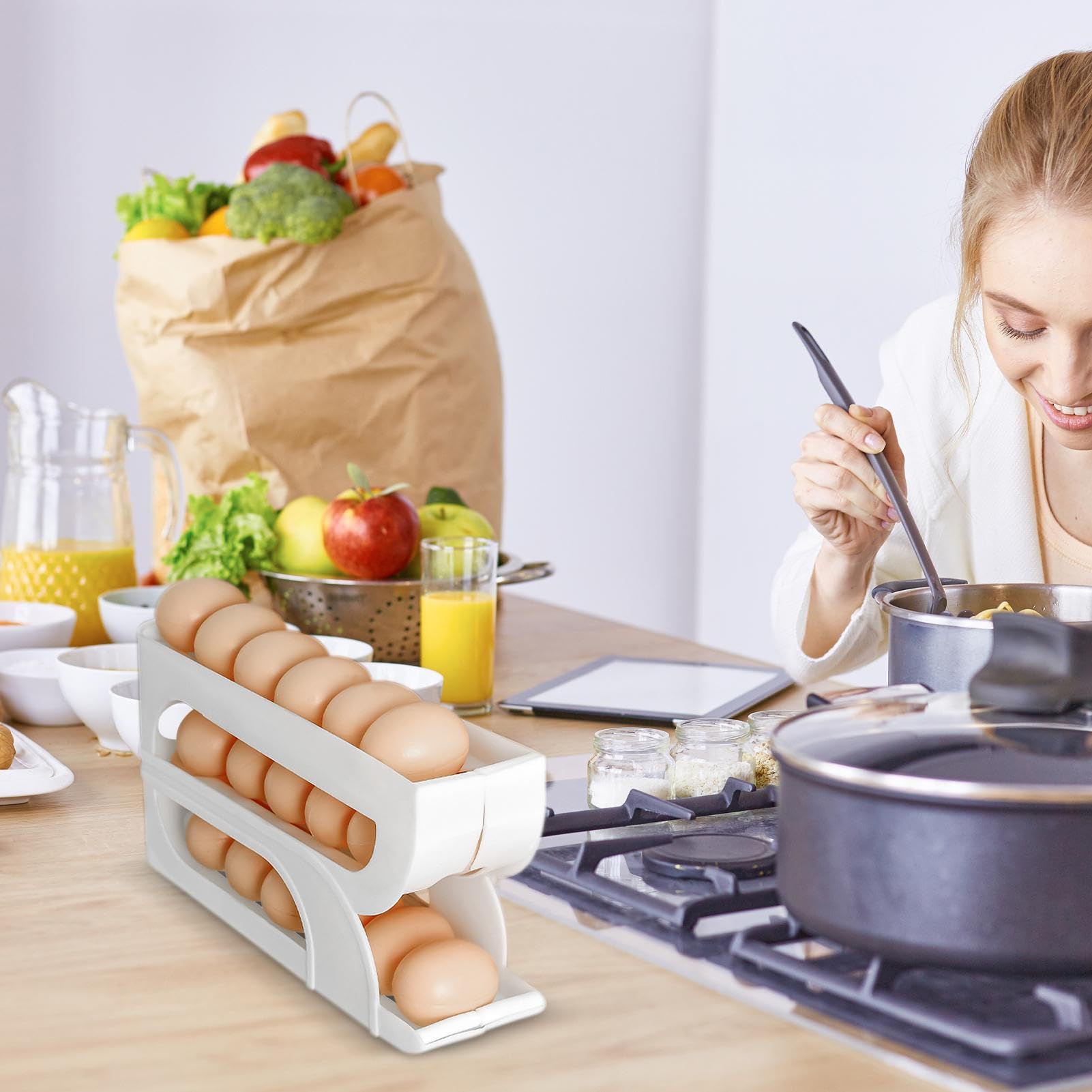 Amesor Eierspender Für Kühlschrank - 3-stufig Mit Rollfunktion In Weiß/Gelb