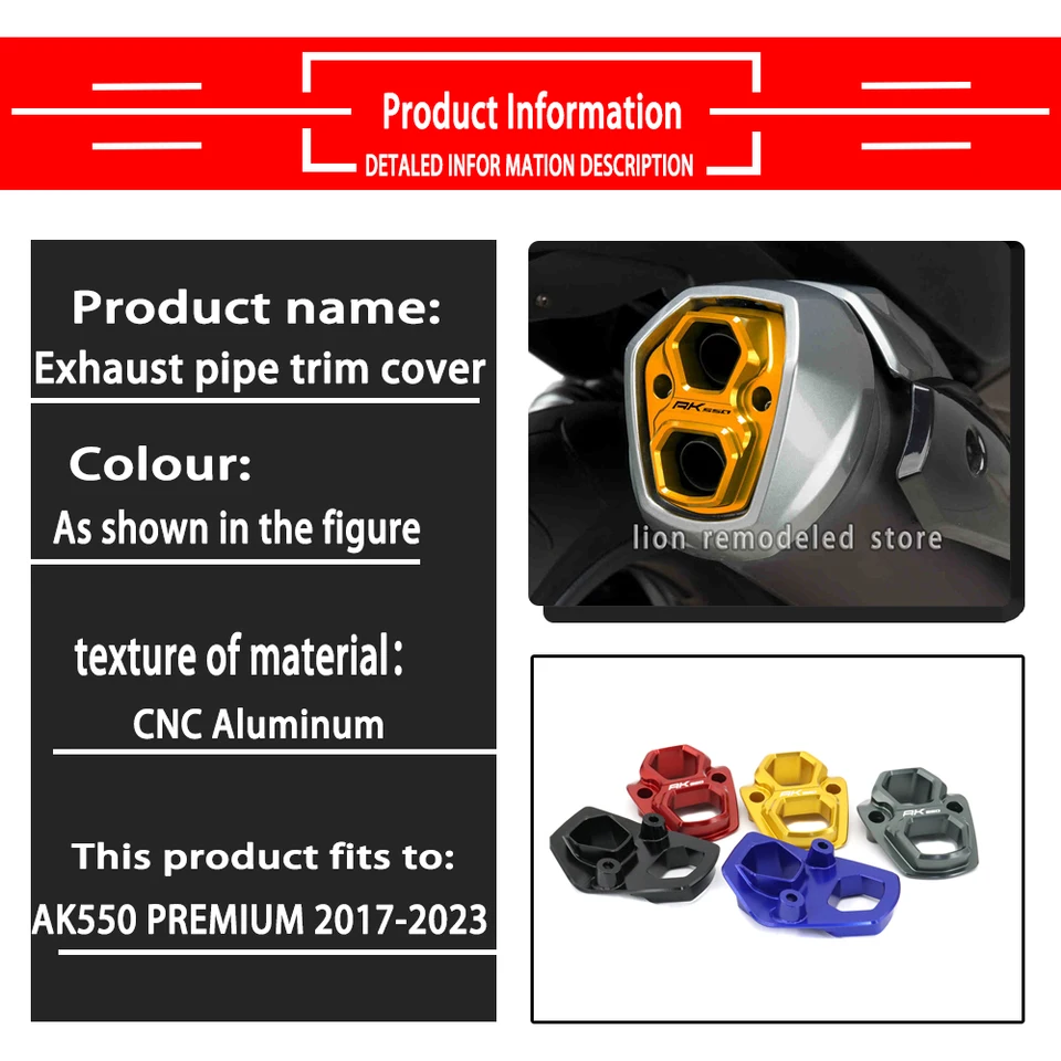 Passt perfekt für die KYMCO AK550 Modelle von 2017 bis 2023, inklusive der Premium-Version. Die eloxierte Aluminiumlegierung verblasst nicht - die Farbe bleibt lange schön.