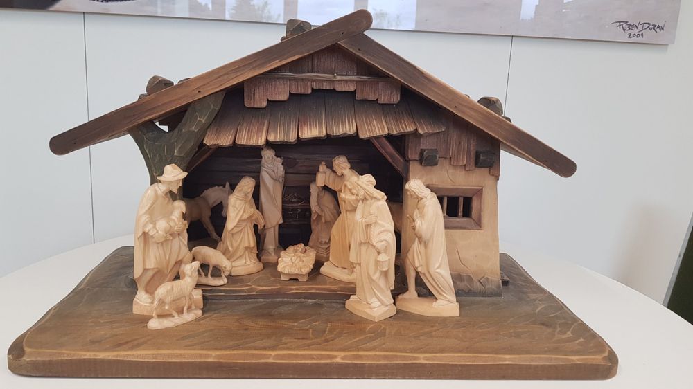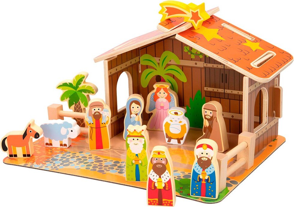WOOMAX Weihnachtskrippe Aus Holz Für Kinder - 15-teiliges Set Mit Doppelseitigem Druck, Ab 3 Jahren