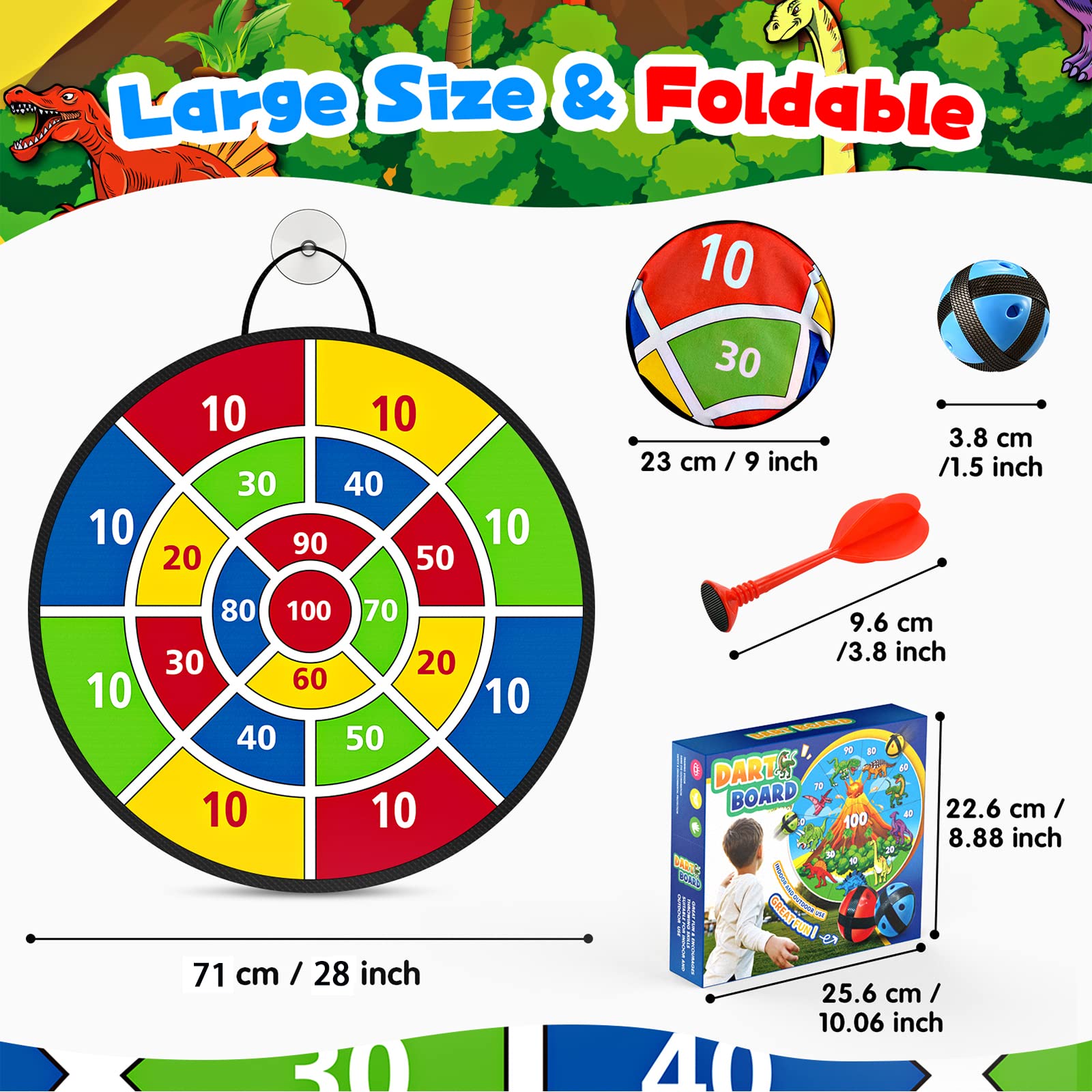90cm Dartscheibe Für Kinder - Faltbar Mit 6 Bällen & 6 Darts Für Indoor/Outdoor