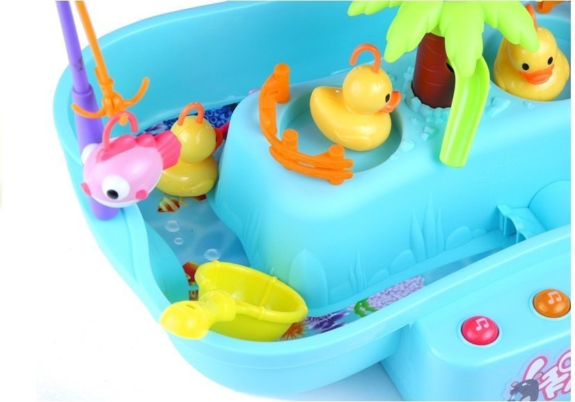 Das macht Spaß! Dieses Angelspiel begeistert kleine Angler ab 3 Jahren. Mit 21 bunten Fischen, 4 Angelruten und 4 Körben. Magnetische Angelhaken - einfach zu bedienen! Dreht sich mit Musik - Fische öffnen und schließen das Maul! Zwei Modi: Musik oder stumm. Fördert Hand-Auge-Koordination und Feinmotorik. Ideal für mehrere Spieler - perfekt für Partys! Benötigt 2 AA-Batterien (nicht enthalten). Ein pädagogisch wertvolles Spielzeug das lange Freude macht!