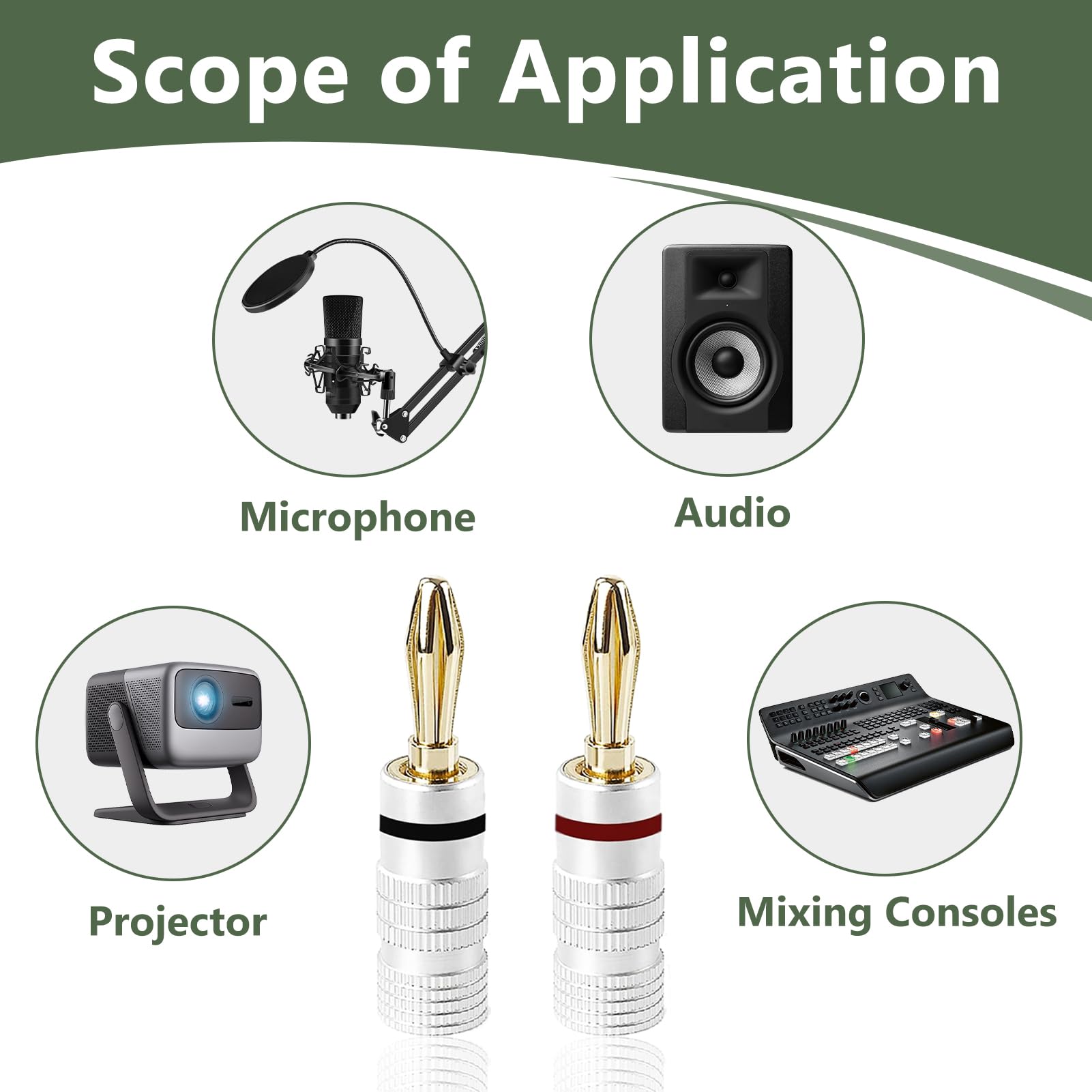 24k Vergoldete Bananenstecker Für Lautsprecher - Audiophile Verbinder Bis 7mm Kabeldurchmesser (4 Stück)