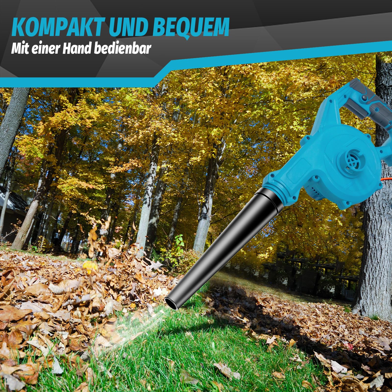 Der Turbo-Modus gibt für 20 Sekunden Extra-Power - perfekt für hartnäckige Laubhaufen oder nasse Blätter. Einfach einschalten und den Garten im Nu blitzblank haben!
