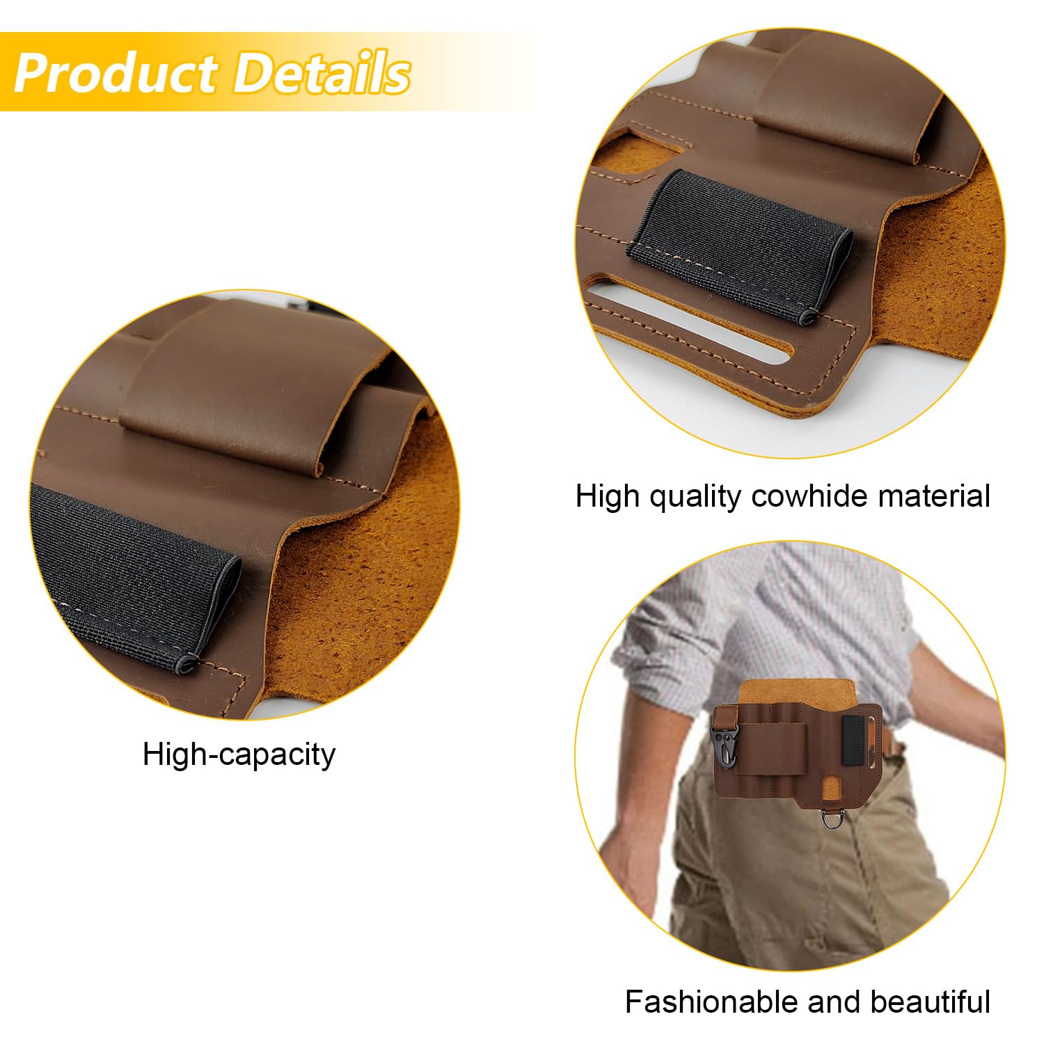 Super praktische Ledertasche für deine EDC-Ausrüstung! Maße 15x14cm - perfekt für Multitool, Taschenlampe, Messer und mehr. Aus hochwertigem PU-Leder das lange hält. Am Gürtel getragen hast du alles immer griffbereit. Spart Platz in den Taschen und organisiert deine Tools perfekt. Separate Fächer für unterschiedliche Gegenstände. Leicht und kompakt - spürst du kaum am Gürtel. Auch toll für Outdoor-Aktivitäten, Arbeit oder täglichen Gebrauch. Einfach reinschieben, am Gürtel befestigen, fertig. Macht dich sofort organisiert und professionell. Ein Game-Changer für alle die viel Werkzeug mit sich rumtragen!