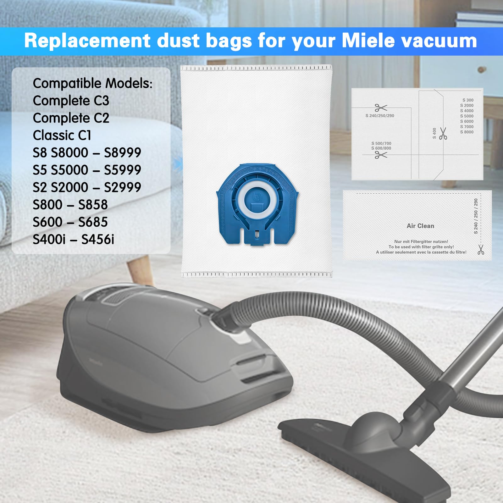 Hey Miele-Besitzer! Diese 10 Staubsaugerbeutel im Set sind genau das Richtige für deinen Miele Staubsauger. Kompatibel mit vielen Modellen: Classic C1, Complete C2, Complete C3, S2, S5, S8, S600, S800 Serie und vielen mehr. Passt auch zu den Teilenummern 9917730, 12421130 und anderen. Jedes Set enthält 10 Beutel plus 4 Motor- und 4 Abluftfilter - alles was du brauchst! Hergestellt aus 5-lagigem Mikrofasermaterial, das genauso gut filtert wie die Originalbeutel. Fängt 99,97% von Staub, Tierhaaren und anderen Partikeln zuverlässig auf - super für Allergiker! Die integrierte Hygienedichtung sorgt dafür, dass nichts zurück in deine Wohnung gelangt. Einfach zu installieren und langlebiger als viele andere Beutel. Wir empfehlen den Wechsel alle 2-3 Monate für beste Leistung. Hol dir dieses praktische 10er-Pack und du bist erstmal für ne ganze Weile versorgt!