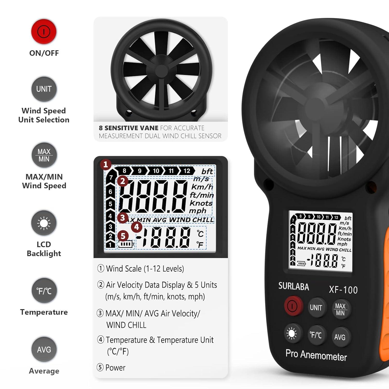SURLABA Digital Windmesser - Anemometer Für Outdoor 0.3-30m/s