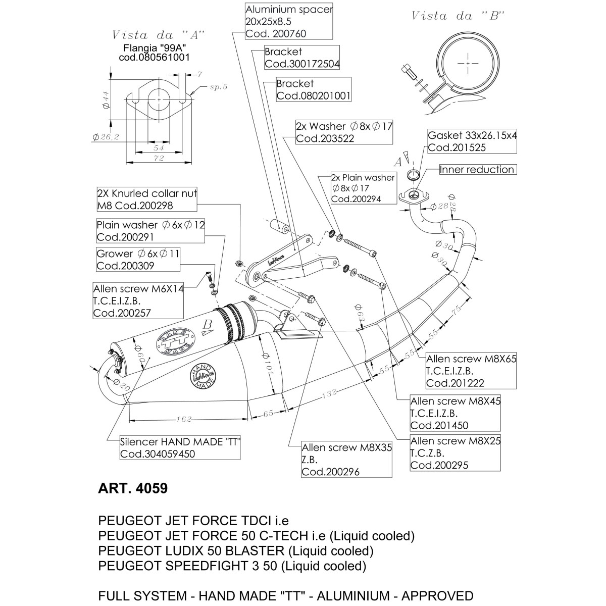 LeoVince Auspuff HAND MADE TT Für Peugeot Ludix 50 - Aluminium, Zugelassen