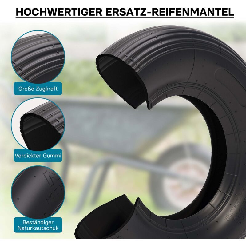 Pass auf, wenn du Schläuche für Schubkarren, Sackkarren oder E-Scooter brauchst, ist dieses 4er-Set genau das Richtige! Die Schläuche haben die Standardgröße 3.50-4 und sind für bis zu 100kg Traglast ausgelegt. Das besondere: Sie haben ein abgewinkeltes Metallventil TR87, was das Aufpumpen mega erleichtert - besonders bei schwer zugänglichen Stellen! Ohne Felge und Mantel geliefert, also nur die Schläuche. Perfekt für den Einsatz im Garten, auf Baustellen oder in der Landwirtschaft. Die robuste Materialqualität hält auch extremen Bedingungen stand und ist langlebig. Einfach zu montieren und wartungsarm - das spart Zeit und Nerven. Mit vier Stück im Set hast du immer Ersatz parat oder kannst mehrere Fahrzeuge gleichzeitig ausrüsten. Egal ob für professionelle Einsätze oder den Heimgebrauch - diese Schläuche machen ihren Job zuverlässig. Praktisch, oder?