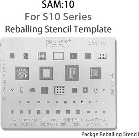 Hey, für alle Handy-Reparatur-Profis: Diese Reballing-Schablone aus Edelstahl ist genau das Richtige für die Arbeit an Samsung S10, S10+ und Note10 Geräten. Mit 0,12mm Abstand und speziell für 9820, 855 und SM8150 CPUs geeignet. Das Edelstahl-Material ist rostfrei und hält auch hohen Temperaturen stand - verformt sich nicht! Die semi-ätzten IC-Steckplätze verhindern, dass das Zinn am Chip kleben bleibt. Super praktisch für die Reparaturwerkstatt, schnell und präzise im Einsatz. Kompakt und leicht, beschädigt weder Mainboard noch CPU. Einfach direkt verwenden und die Reparatur-Qualität verbessern! Wenn du öfter Samsung-Geräte reparierst, ist diese Schablone ein absolutes Must-Have. Macht die Arbeit einfacher und professioneller - was will man mehr?