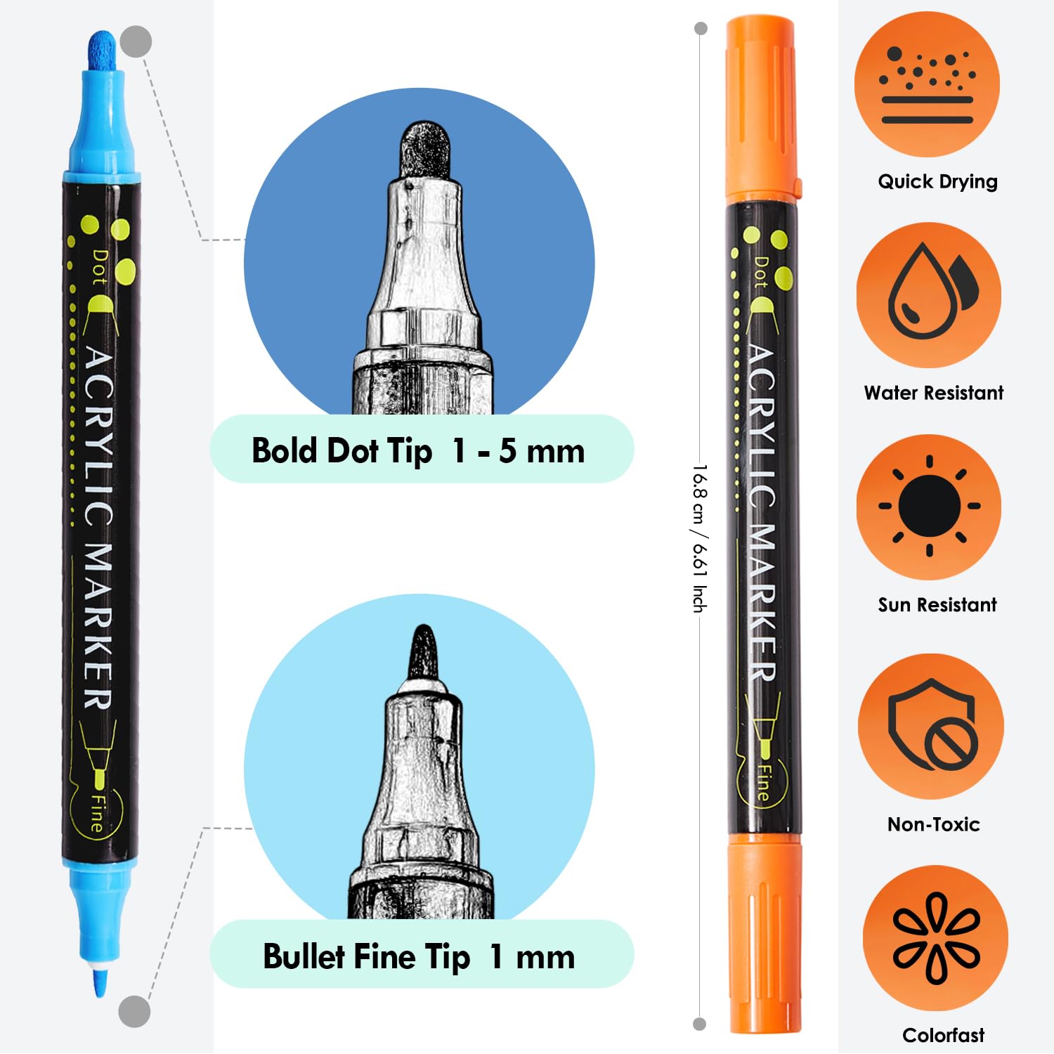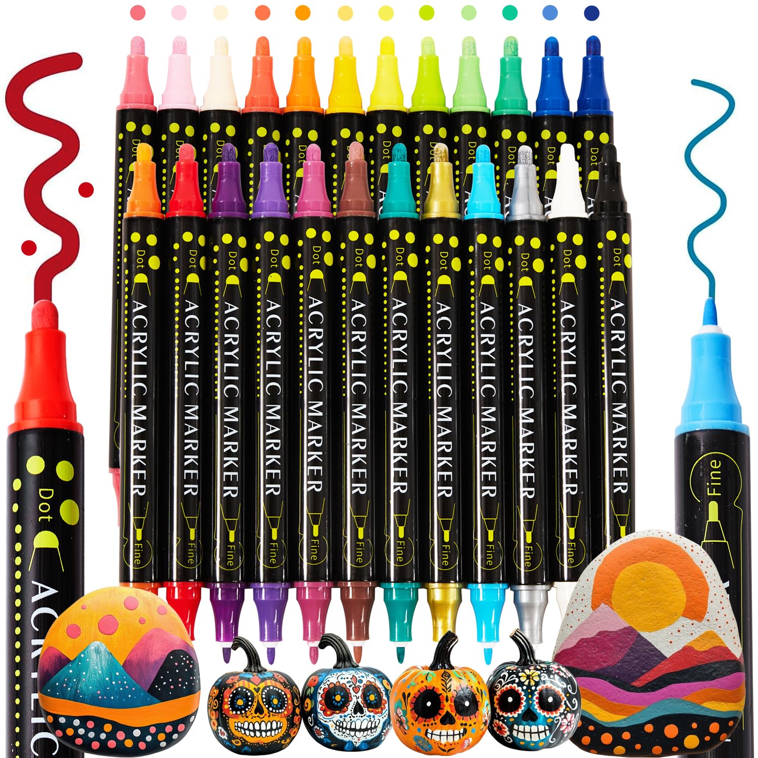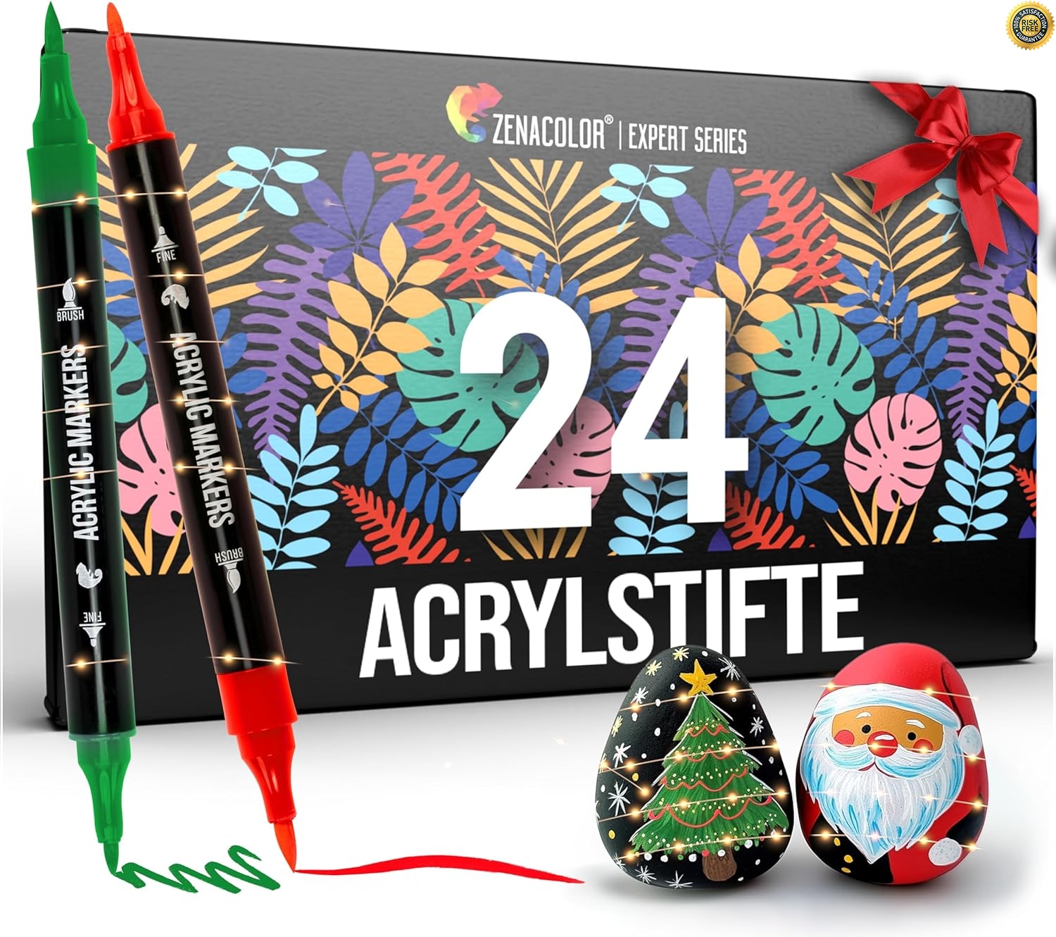 24 Acrylstifte Für Steine & Holz - Doppelspitzig & Wasserdicht