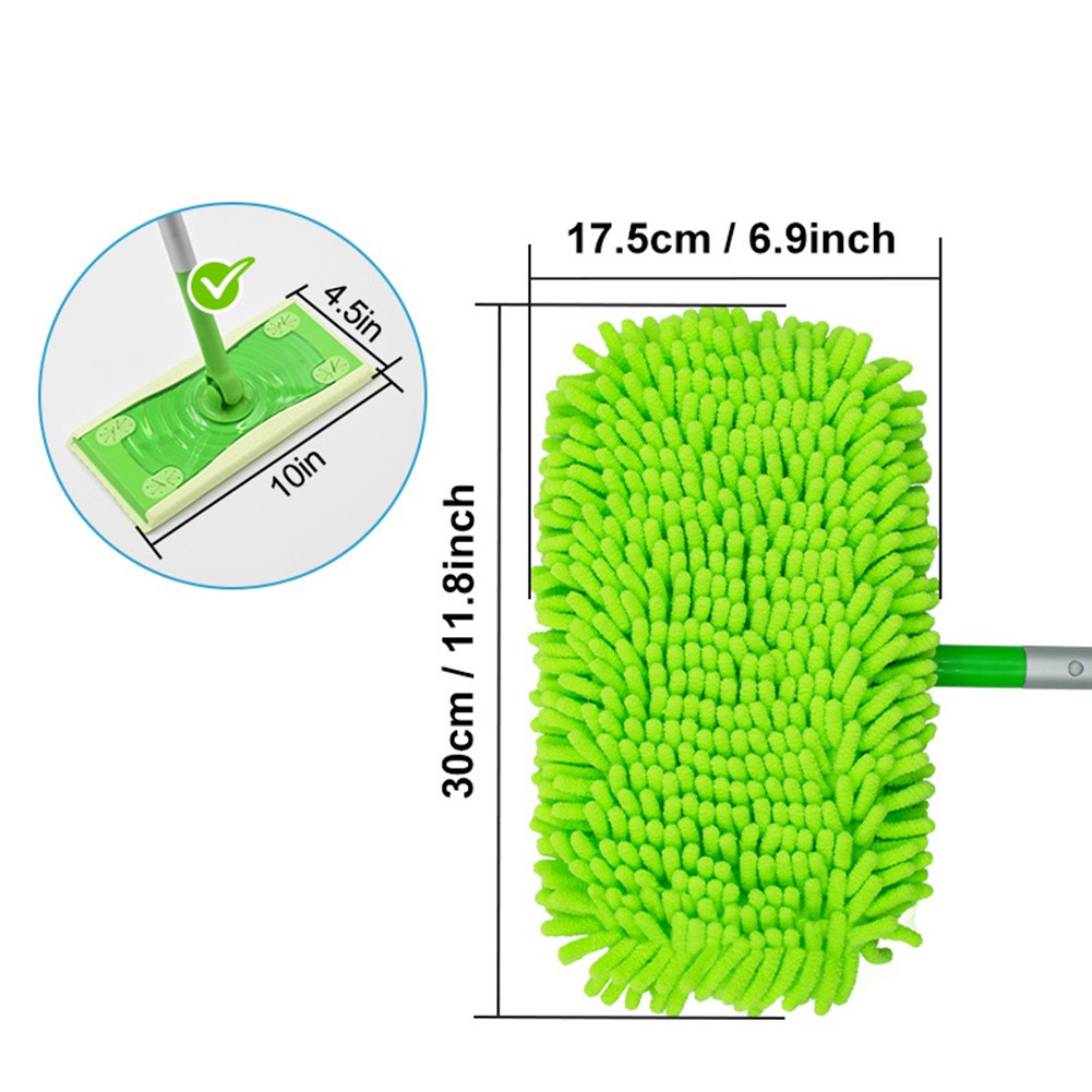Schluss mit teuren Einweg-Pads für deinen Swiffer! Diese WIIYENA Mikrofaser-Pads sind wiederverwendbar und sparen dir nicht nur Geld, sondern sind auch noch umweltfreundlicher. Mit 30 x 17,5 cm passen sie perfekt auf deine Kehrmaschine und sitzen bombenfest.\n\nDas Mikrofaser-Material ist ein echter Alleskönner: Es fängt Staub, Schmutz und Tierhaare super effektiv ein – sowohl bei der Trockenreinigung als auch beim Nasswischen. Die saugstarke Chenille-Oberfläche nimmt Verschüttungen sofort auf und hinterlässt deine Böden blitzsauber.\n\nNach dem Gebrauch einfach in die Waschmaschine werfen – bei 30°C werden die Pads wieder hygienisch sauber und sind sofort einsatzbereit. So hast du immer frische Pads zur Hand, ohne ständig neue kaufen zu müssen. Die grüne Farbe sieht dabei noch richtig frisch aus!\n\nPerfekt für alle Böden zu Hause – ob Fliesen, Laminat oder Parkett. Besonders praktisch in Haushalten mit Haustieren oder Kindern, wo öfter mal was daneben geht. Mit 6 Stück im Set hast du immer genug Ersatz, während die anderen in der Wäsche sind.\n\nAlso, mach Schluss mit der Wegwerf-Mentalität! Diese waschbaren Pads sind nicht nur praktischer, sondern schonen auch deinen Geldbeutel und die Umwelt. Einfach reinigen, trocknen und wieder verwenden – so einfach kann nachhaltige Reinigung sein!