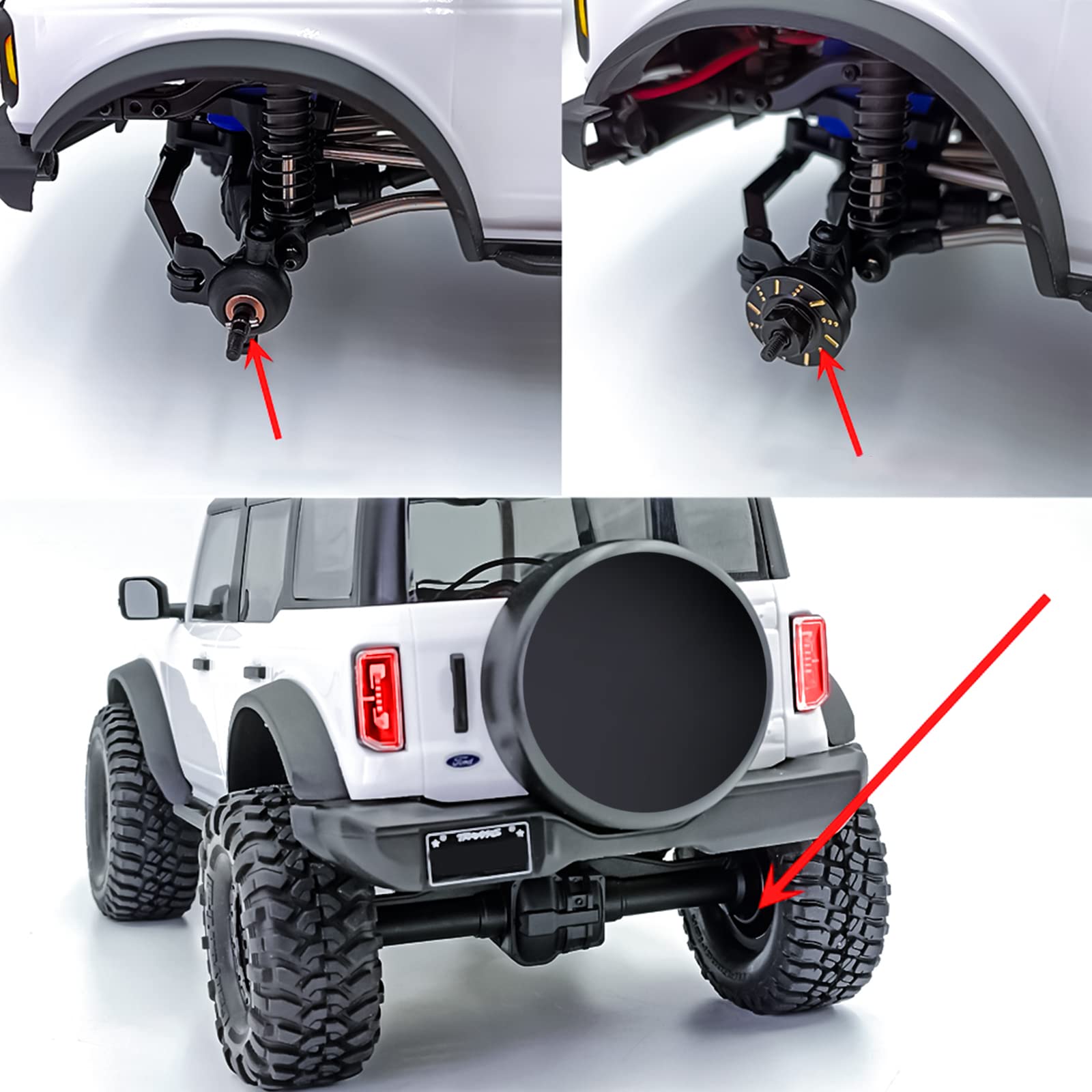 Upgrade deinen TRX-4M RC Crawler mit diesen hochwertigen Messing-Radnabenverlängerungen! Das 4-teilige Set wiegt 22g und sorgt für mehr Gewicht an den Rädern - das verbessert die Griffigkeit und Leistung deines Modellautos erheblich. Einfach zu installieren, einfach die Originalteile ersetzen und schon geht's los. Die Messing-Sechskant-Adapter sind robust verarbeitet und halten auch intensivem Geländeeinsatz stand. Perfekt abgestimmt auf den TRX-4M Bronco Defender im Maßstab 1/18. Mit diesem Upgrade macht das Crawlen noch mehr Spaß und dein Auto meistert selbst schwierigstes Terrain mit Bravour. Ein Muss für jeden ernsthaften RC-Modellbauer!