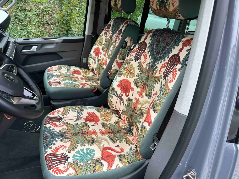 Perfekte Sitzbezüge für deinen VW T6 California! Aus hochwertigem Kunstleder, das nicht nur super aussieht, sondern auch praktisch ist: wasserdicht, rutschfest und für alle Jahreszeiten geeignet. Das Komplett-Set enthält alles für Vorder- und Rücksitze inklusive Kopfstützen. Der Clou: Spezielles Sicherheitsdesign, das die Airbag-Funktion nicht beeinträchtigt und genug Platz für die Gurtschlitze lässt. Ob verschüttete Getränke, Sand vom Strand oder Haare vom Hund - einfach mit einem feuchten Tuch abwischen und schon ist alles wieder sauber. Montage ist total easy, keine Vorkenntnisse nötig. Sieht aus wie original und schützt deine Sitze vor allem, was so im Camper-Alltag passieren kann!