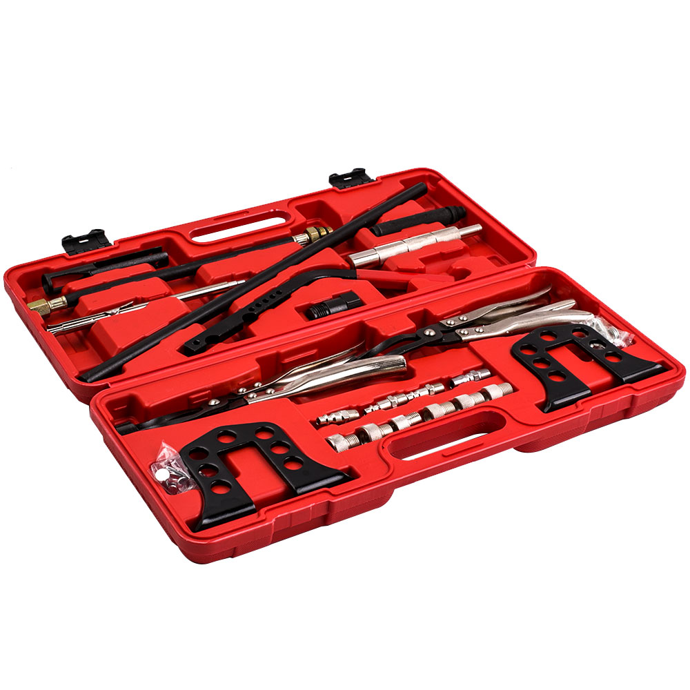Dieses Ventilfederspanner-Set ist ein echter Profi-Helfer für jede Werkstatt! Damit kannst du Ventilfedern an Autos, Motorrädern und sogar kleinen Bootsmotoren wechseln - super einfach und sicher. Die verschiedenen Adapter machen das Set super vielseitig und passen für die meisten Motoren. Einfach die Feder zusammendrücken, Ventilsplitter rausnehmen oder einsetzen, und fertig! Kein Herumgefummel mehr mit provisorischen Lösungen. Aus robustem Material gefertigt, hält dieses Werkzeug ewig. Ob du Profi-Schrauber bist oder Hobby-Mechaniker - mit diesem Set machst du nichts verkehrt. Eine lohnende Investition, die sich schnell bezahlt macht!