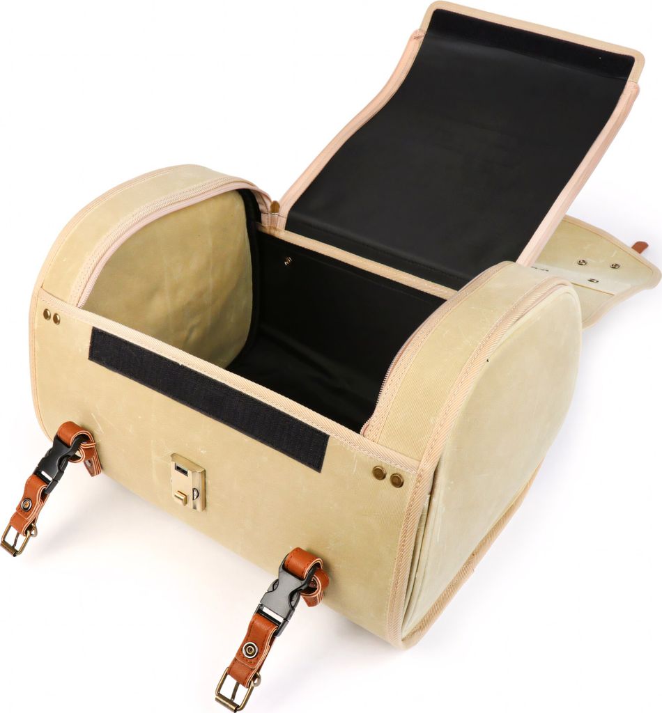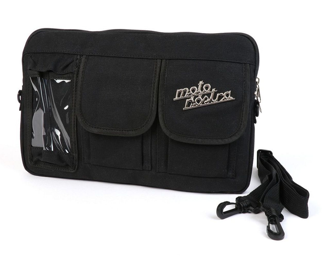 Stylish und super praktisch - diese Tasche für deine Vespa oder Lambretta! Einfach mit den Haltebändern (festem Klettverschluss) an der Gepäckfachklappe befestigen und schon hast du immer alles griffbereit. Portemonnaie, Sonnenbrille, Schlüssel, Papiere - alles hat seinen Platz. Die Tasche ist aus gewachstem Canvas und sieht nicht nur vintage-mäßig cool aus, sondern ist auch noch wasserabweisend! Es gibt sie mit Getränkehalter oder - wie diese Version - mit Handyhalter für Smartphones bis 6,2 Zoll. Der Tragegurt ermöglicht es dir, die Tasche einfach mitzunehmen. Das Beste: Das Gepäckfach bleibt voll funktionsfähig! Falls mal Kratzer in der Wachsoberfläche sind - einfach mit dem Fön drüber und sie sind weg. Wichtig: Bei Dauerregen kann trotzdem Feuchtigkeit eindringen, daher am besten regelmäßig imprägnieren. Ein absoluter Hingucker und mega praktisch!