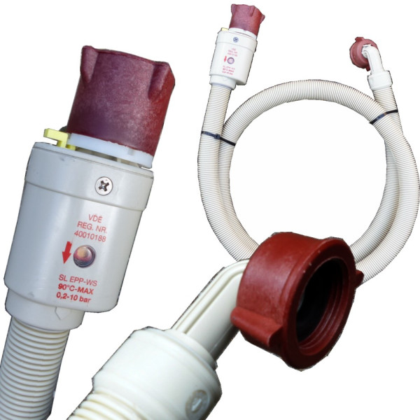 Dieser Aquastop-Sicherheitsschlauch schützt dich zuverlässig vor Wasserschäden! Mit dem genialen Schlauch-in-Schlauch-System wird bei einem Leck oder Bruch das Wasser von der äußeren Schutzhülle aufgefangen und das Sperrventil schließt sofort. Die Platzsicherung löst bei 60 bar Druck aus - dein Boden bleibt trocken! Mit 1500mm Länge passt er für die meisten Waschmaschinen und Spülmaschinen. VDE-geprüft und zugelassen (Nr. 40010188) - also absolute Sicherheitsqualität. Hält bis zu 20 bar Druck und Temperaturen bis 93°C stand. Der 3/4\ Anschluss passt für Standard-Wasserhähne. Einfach den alten Schlauch ab- und diesen neuen anschließen - und du kannst ruhig schlafen, selbst wenn du nicht zu Hause bist. Perfekt für Mieter und Eigentümer - verhindert teure Wasserschäden durch geplatzte Schläuche. Ein kleines Investment für großen Schutz - deine Waschmaschine war noch nie so sicher angeschlossen!