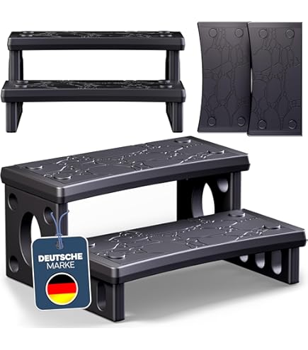 Endlich sicher in den Whirlpool ein- und aussteigen! Diese Puri Tech Leiter ist genau das Richtige für deinen Spa oder Aufstellpool. Mit 3 rutschfesten Stufen - kein Ausrutschen mehr, auch wenn's nass ist! In schickem Dunkelbraun passt sie zu fast jedem Whirlpool. Maße: 28x28x39cm - kompakt aber stabil. Aus robustem Kunststoff, UV-geschützt und wartungsfrei. Die T-Lock Installation sorgt für mega Stabilität - die Stufen rasten einfach ein. Perfekt für drinnen und draußen. Einfach aufstellen und schon kannst du sicher in deinen Whirlpool steigen. Leicht zu reinigen - einfach abwischen und fertig! Ob für dich selbst oder für ältere Familienmitglieder - mit dieser Leiter machst du alles sicherer. Einfach bestellen und entspannt plantschen!