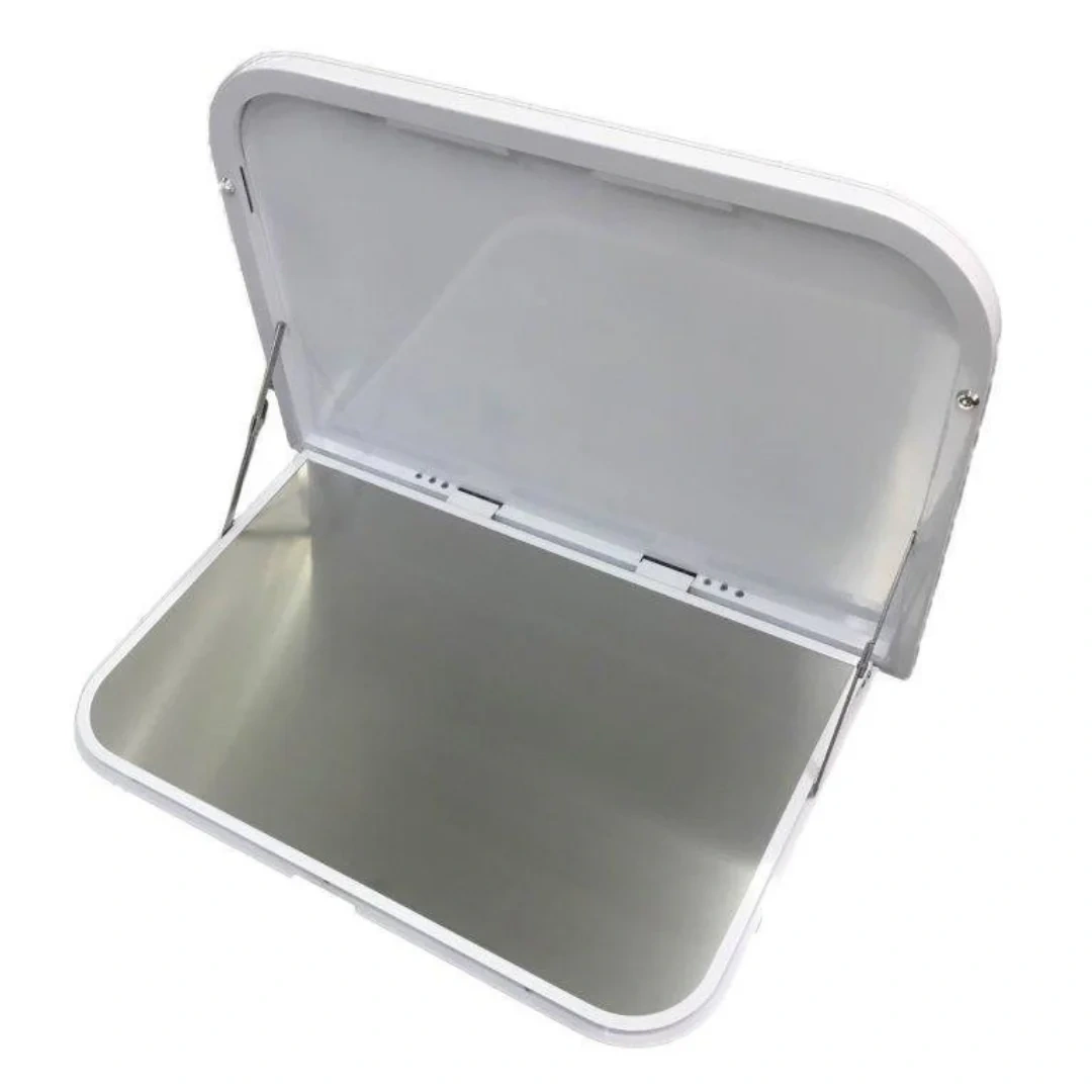 Perfekter Platzsparer für dein Wohnmobil! Dieser klappbare Tisch aus Aluminium-Legierung ist ein echter Allrounder für unterwegs. Mit 60x42 cm Größe bietet er genug Platz für Mahlzeiten, Laptop oder einfach nur für den Morgenkaffee. Wenn nicht in Gebrauch, klappt er platzsparend zur Wand und sieht aus wie eine Frachtür - total unauffällig! Die 2 cm dicke Platte hält bis zu 20 kg aus, dank der stabilen Dreieckskonstruktion. Das Dual-Lock-System mit zwei Schlüsselpaaren sorgt für sicheren Halt, selbst auf unebenem Grund. Aus hochwertiger, wasserfester Aluminiumlegierung - rostet nicht und hält auch mal einen Stoß aus. Einfache Montage mit komplettem Zubehör und mehrsprachiger Anleitung. Perfekt für Vans, Pontons, Wohnmobile oder Reisemobile. Macht das Camping-Leben so viel einfacher! Ob Frühstück im Freien, Abendessen oder als Ablage - dieser Tisch ist immer zur Stelle. Ein Muss für alle Outdoor-Fans, die Komfort und Praktikabilität schätzen!