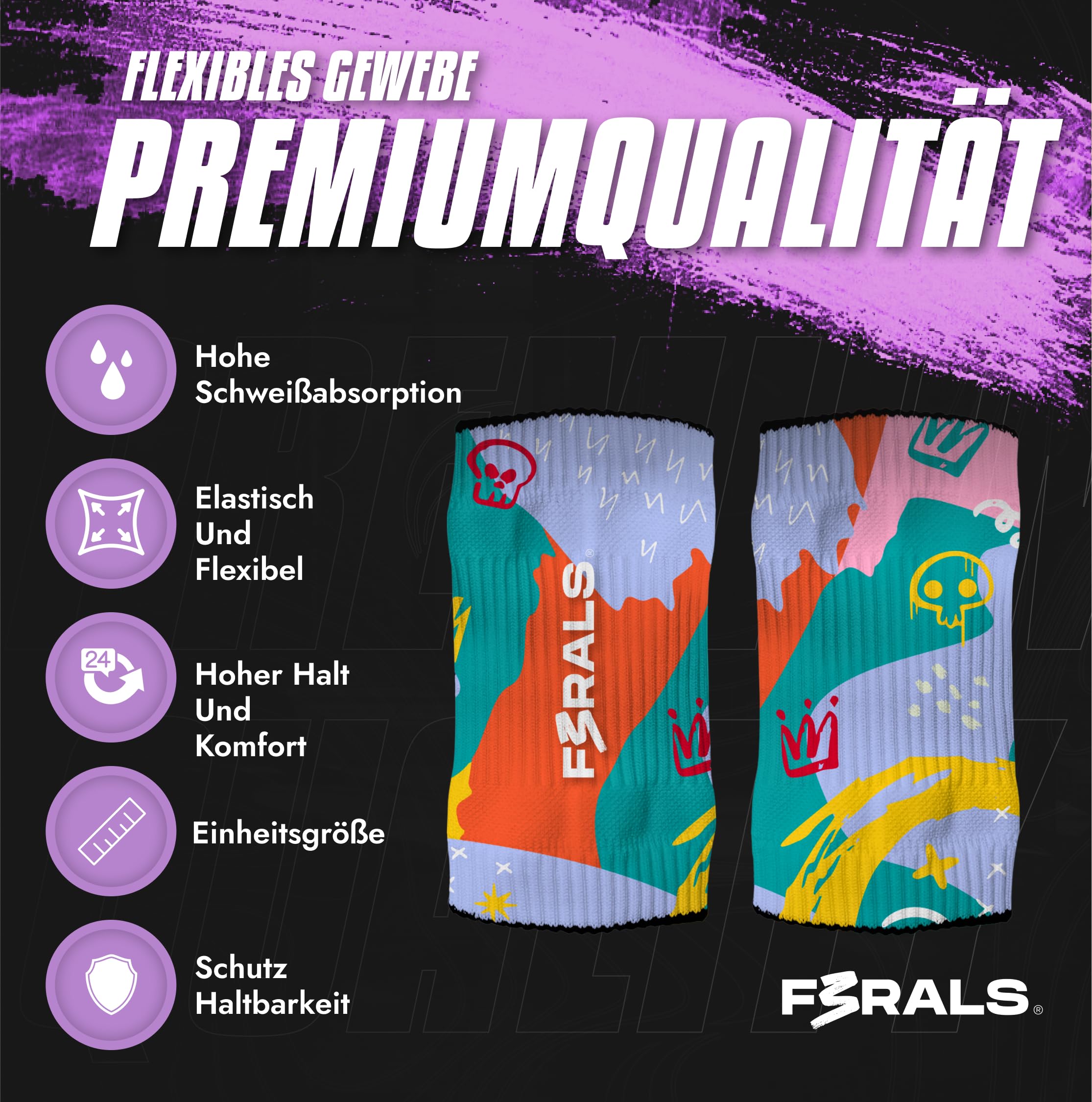 Schluss mit Schweiß in den Augen! Diese stylischen Schweißbänder von F3RALS saugen zuverlässig Schweiß auf und halten deine Hände trocken – ob beim Tennis, Workout, Laufen oder im Cross-Training. \\n\\nSuper weich, atmungsaktiv und bieten einen guten Support fürs Handgelenk, ohne zu drücken. Es gibt sie in verschiedenen coolen Farben, sodass du deinen Look im Gym aufpeppen kannst. \\n\\nDas Material ist hautfreundlich und für Männer und Frauen gleichermaßen geeignet. Einfach in der Waschmaschine waschbar, damit sie nach jedem schweißtreibenden Einsatz wieder frisch sind. \\n\\nPerfekt für alle, die beim Sport nicht auf Style und Funktionalität verzichten wollen. Sieh gut aus, bleib trocken und konzentrier dich auf deine Leistung!