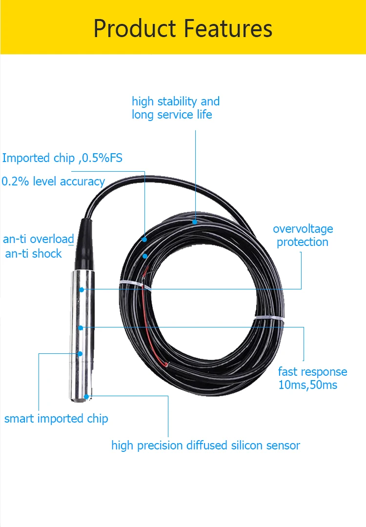 Brauchst du eine zuverlässige Lösung zur Wasserstandsmessung? Dieser hydrostatische Pegelsensor mit RS485-Schnittstelle ist genau das Richtige für dich! Die SS316L-Sonde ist super korrosionsbeständig und hält auch in anspruchsvollen Umgebungen problemlos stand. Mit einer Genauigkeit von 0,2% FS liefert er präzise Messwerte für Seen, Flüsse oder Tiefwassertanks. Das Ausgangssignal von 0,5–4,5VDC bei 5VDC Stromversorgung macht die Integration echt einfach. Besonders praktisch: Die abnehmbare Anti-Verstopfungsvorrichtung und die vibrationsdämpfende Konstruktion sorgen für lange Haltbarkeit. Perfekt für Wasser, Öl und andere schwach korrosive Flüssigkeiten. Ob für die Überwachung von Gewässern, in der Industrie oder für Bewässerungssysteme - dieser Sensor liefert stabile und zuverlässige Leistung. Einfach installieren und von genauen Messwerten profitieren! Mit 1m Reichweite und 1m Kabel ideal für die meisten Anwendungen. Ein echter Profi für alle, die es genau wissen wollen!