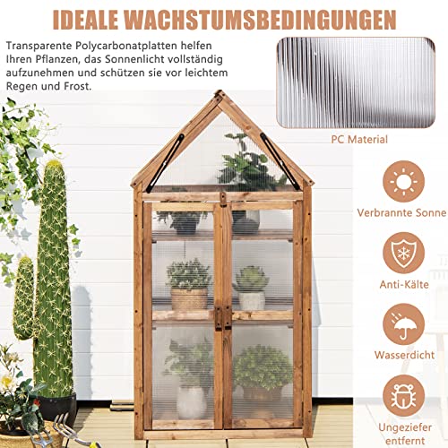 FANTASK 3-etagiges Frühbeet Aus Holz - Gewächshaus Mit Polycarbonat-Fenster & Klappbarem Dach
