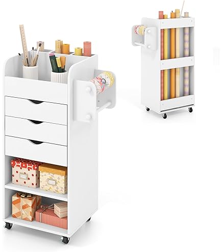 FANTASK Mobiler Aktenschrank - Rollcontainer Mit 5 Schubladen 79x39x65cm In Weiß