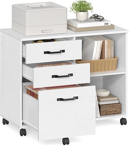 Mega praktisch, dieser mobile Aktenschrank! Mit 5 Schubladen und einem Schrankfach bietet er unendlich viel Stauraum für deine Unterlagen, Büromaterial oder was auch immer du verstauen willst. Die großzügige Arbeitsfläche oben eignet sich perfekt für Drucker, Scanner oder als Ablage. Dank der 5 Rollen (2 mit Bremsen!) ist er super mobil und lässt sich leicht im Raum verschieben. Aus stabilem Holzwerkstoff gefertigt, hält er bis zu 80 kg aus - das ist richtig robust! Perfekt fürs Büro, Homeoffice, Wohnzimmer oder Schlafzimmer - dieser Rollcontainer ist ein echter Allrounder. Die glatte Oberfläche ist easy zu reinigen, einfach mit einem feuchten Tuch abwischen. Mit der detaillierten Anleitung ist der Aufbau kein Problem. Ob als Beistelltisch, Nachttisch oder einfach als Ordnungswunder - dieses Teil macht einfach alles mit! Endlich alles an einem Platz und trotzdem flexibel verschiebbar - was will man mehr? Hol dir diesen praktischen Helfer und bring Ordnung in dein Leben!